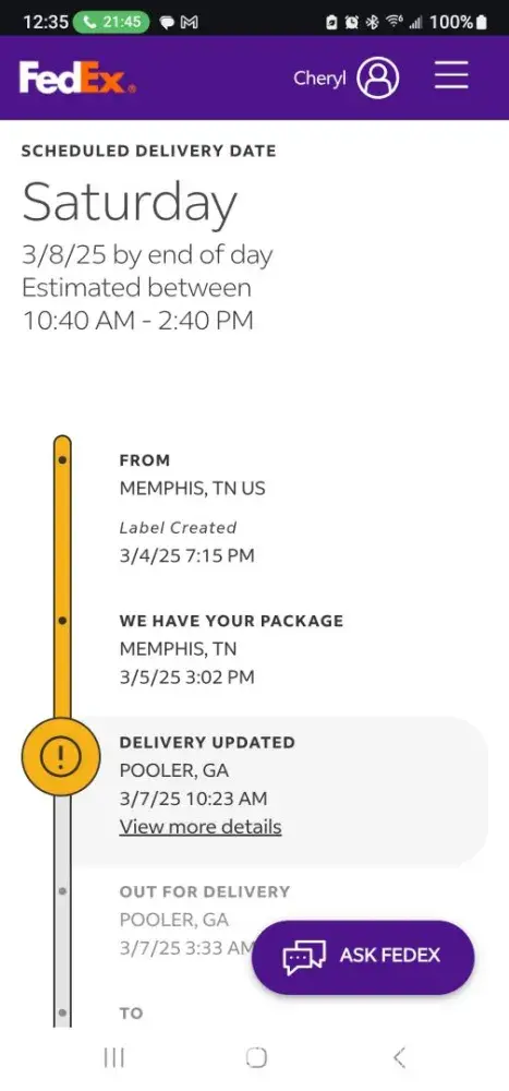 I ordered on March 4th 2 things for my daughter to have delivered on March 7th for her 30th birthday. Order number [protected] the items shipped seperately through FedEx (I did not select the shipper) 800 flowers did. I received a call on the morning of March 7th stating the delivery was not going to make it on the 7th and that I needed to call the shipper. I should not have to do that. If 1800 flowers used FedEx to deliver their product that I ordered from them, they should fix this or give me a credit for paying extra for shipping and a deliver on a specific date. FedEX Orders flowers = [protected] and candly = [protected]