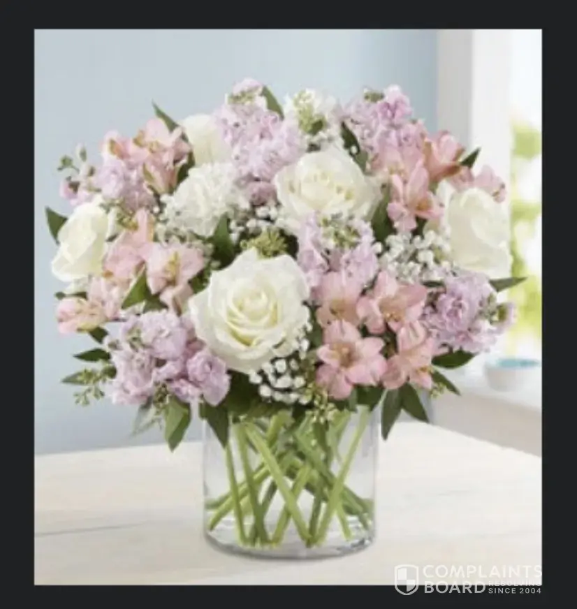 Desired outcome: Full refund including 1 year of free shipping. Replacement of the flowers as a gesture of goodwill. A note of apology to the recipient from 1.800!!!