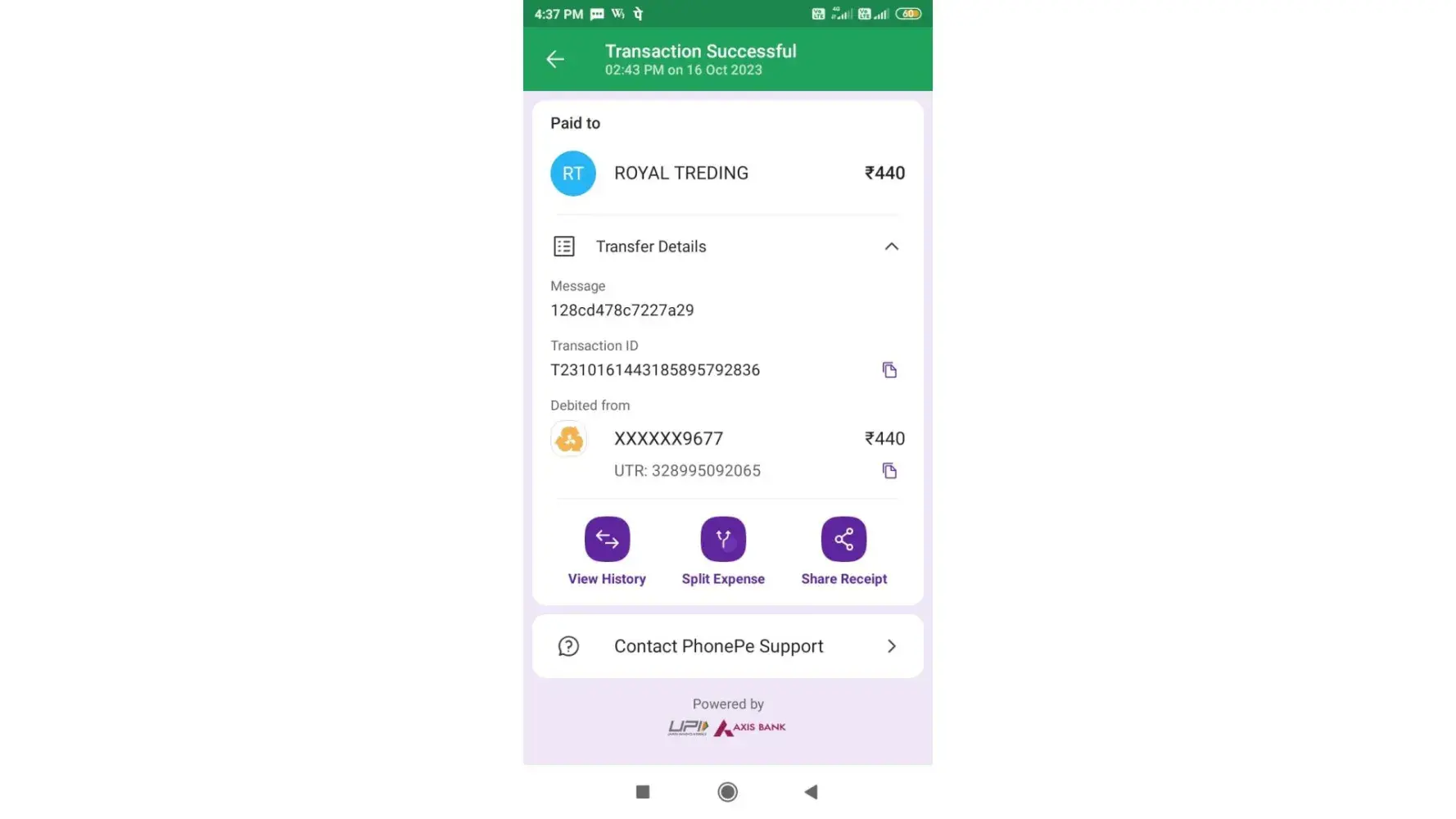 I made a transaction of ₹25000 on Wednesday 25th October,2023 to deposit on 1xbet account. Money debited from my account at 10:14pm but not reflected on my 1xbet account. I have attached the screenshot of the transaction from google pay below.