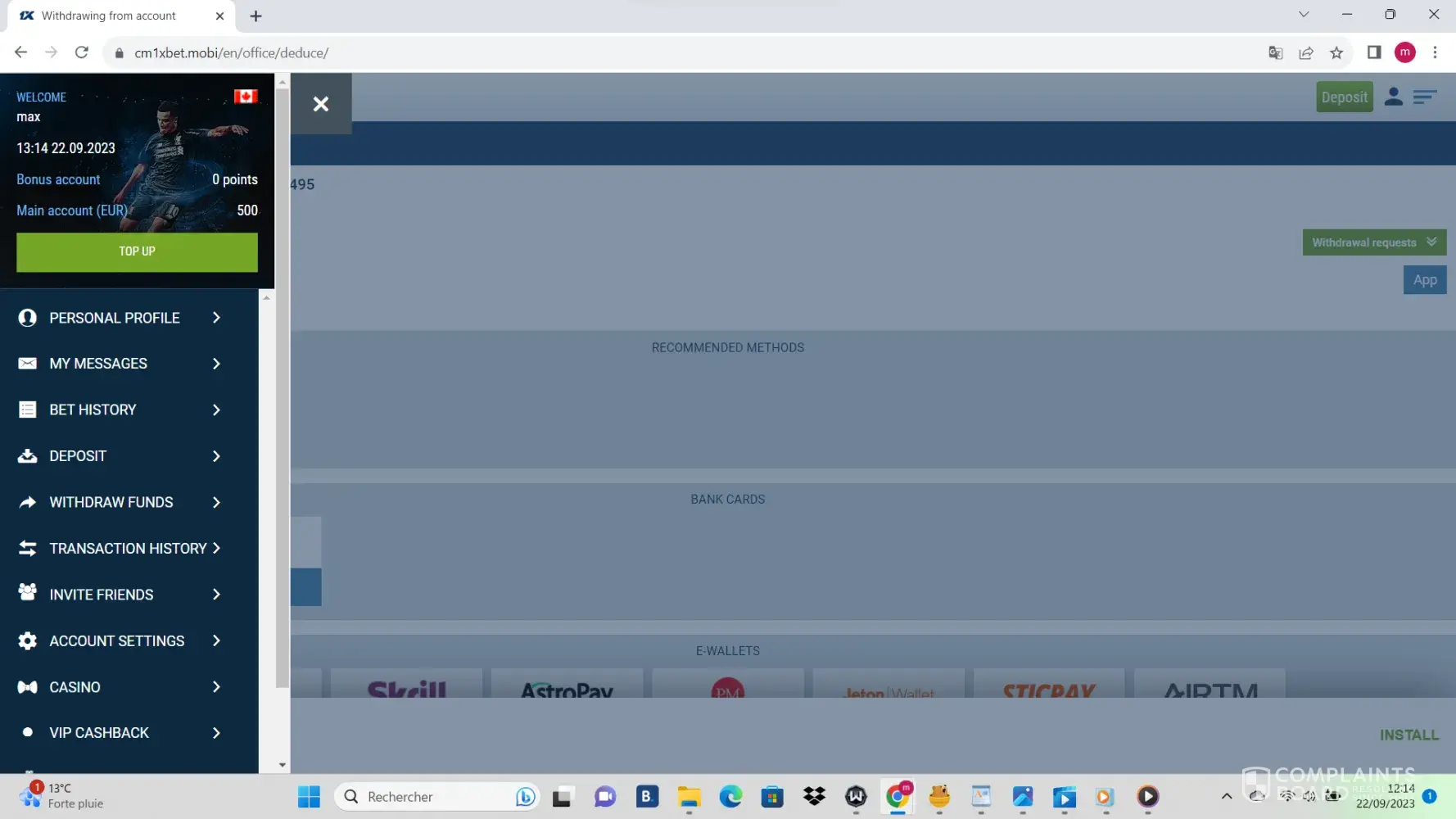 I send the amount of 1000 and then 200 to 1xbet it was rejected but deducted from my account