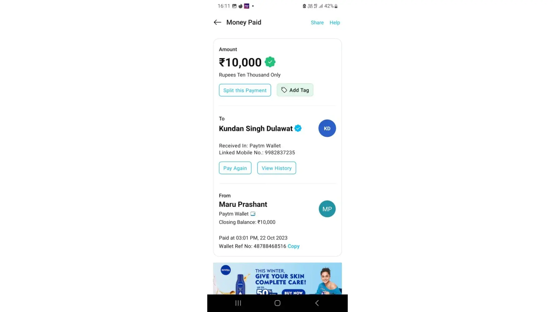 Today i deposited 500 Rupees in my account but still not cradit in my account. Can you resolve this issue.