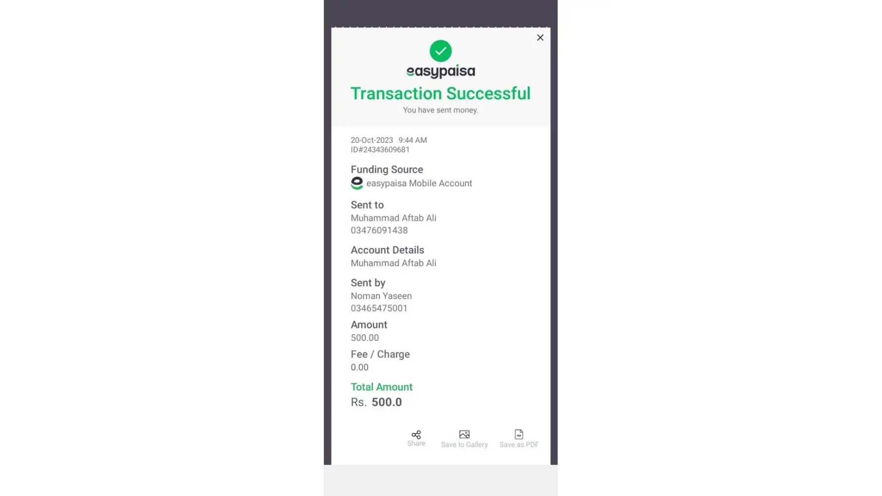 I transfer to easypaisa account of= AZAM ALI Easypaisa account
