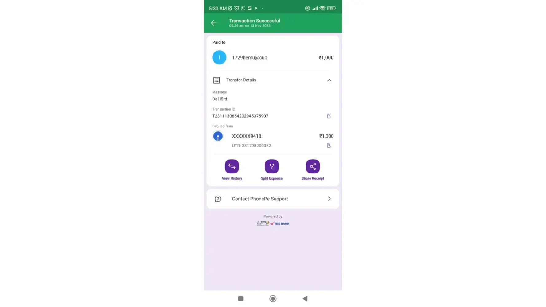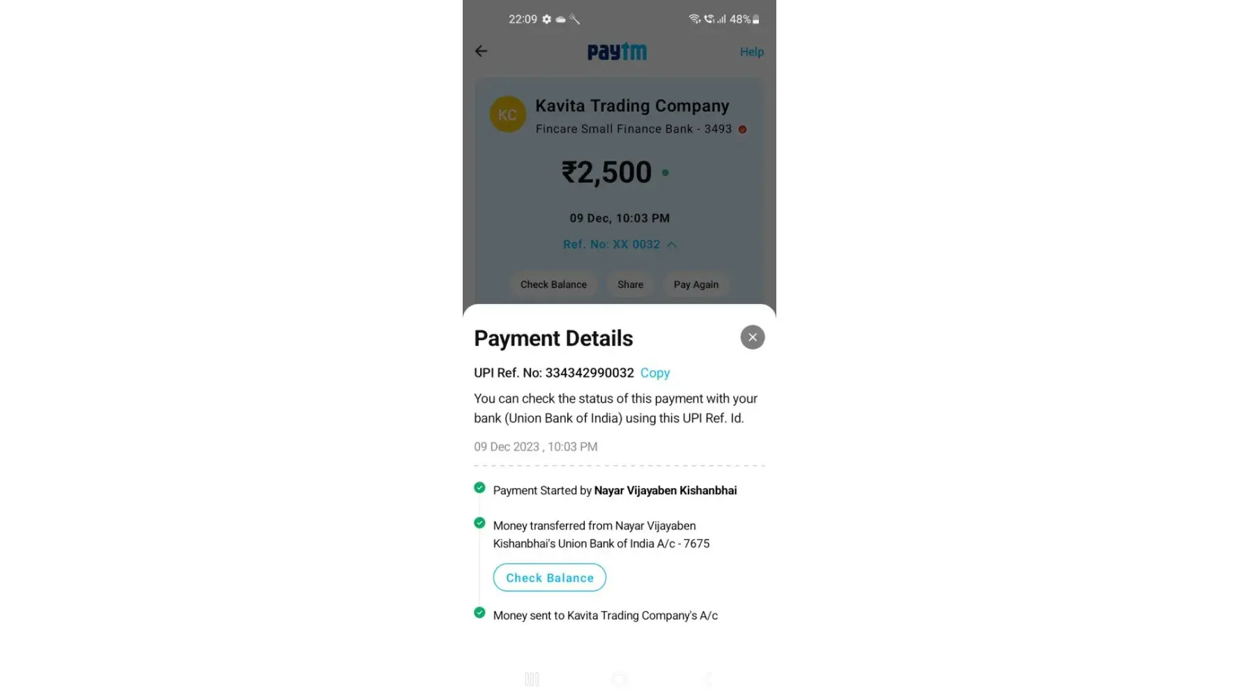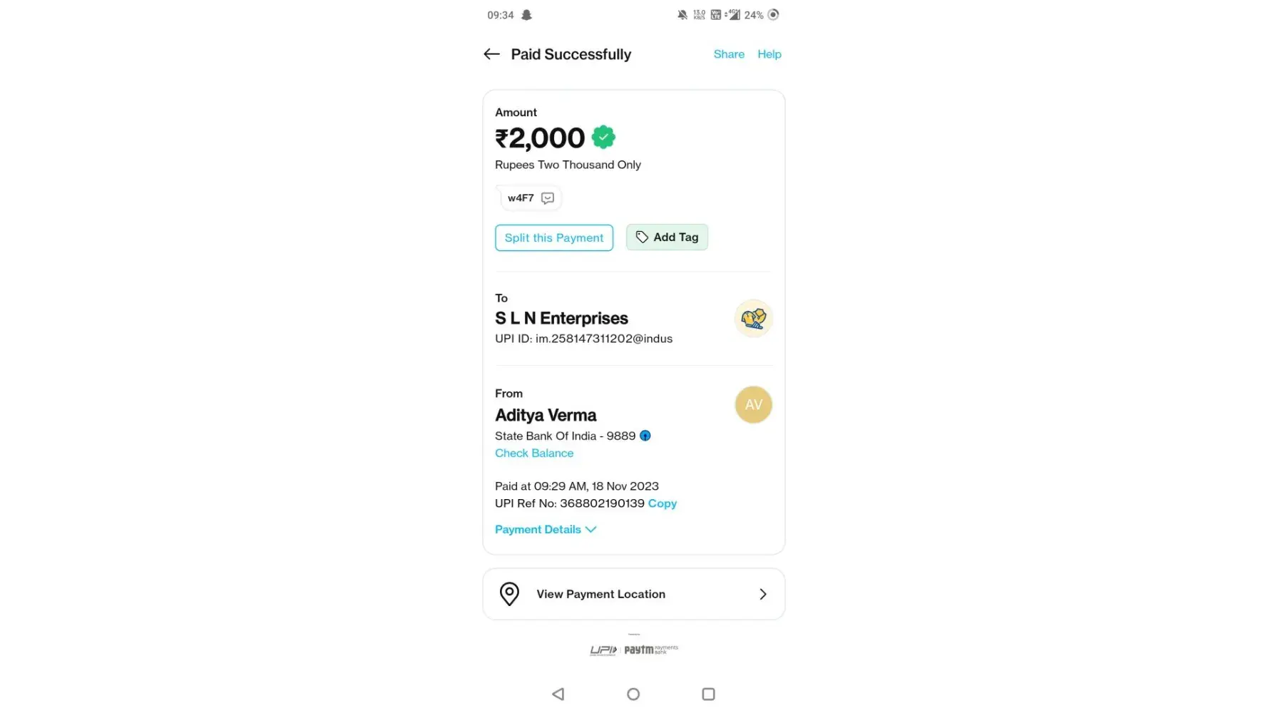 I have paid Rs 2000 via QR code00463490 on 12/11/2023 at 18:12:37 at Khurram mobiles tid :[protected]