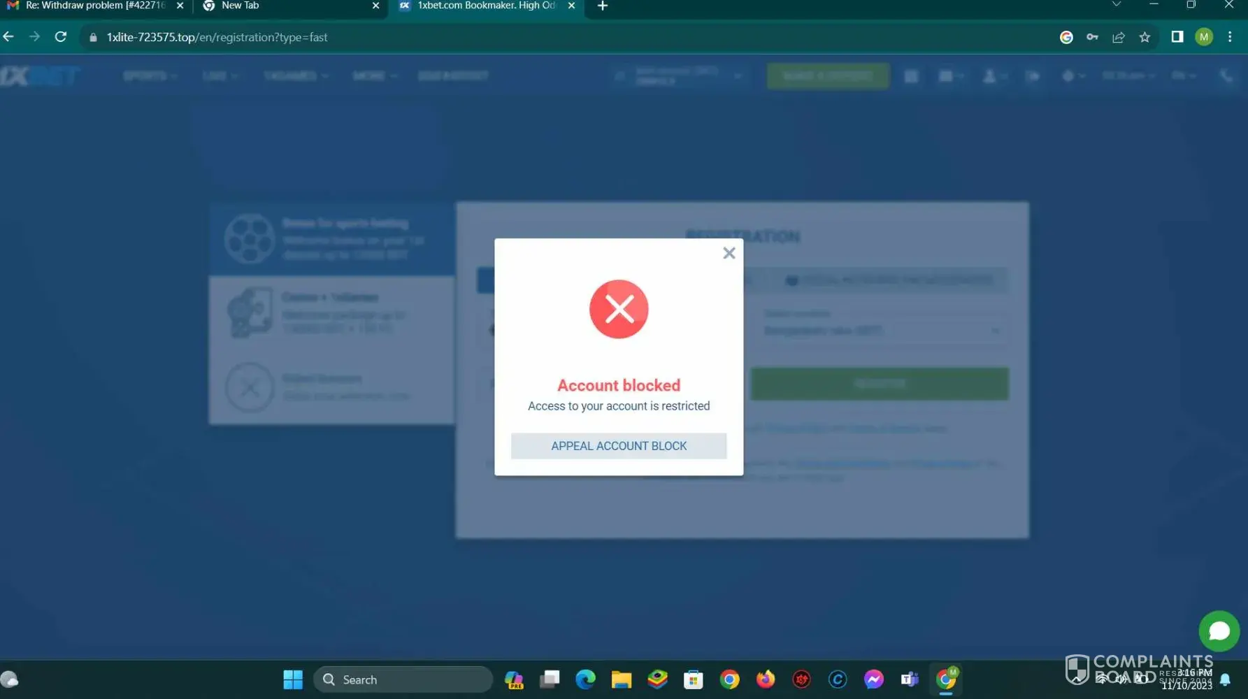 My account with 879.42 euros has been blocked since 04/25, I have returned an appeal form that asked me to wait 72 hours, after 72 hours, 1xbet sent me a new message asking me to wait another 72 hours.