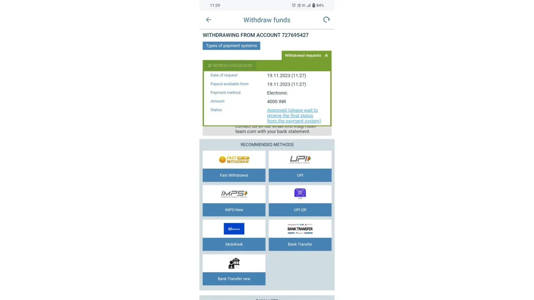 I didn’t recieve my. Payment of 800 Rs Pkr from Easypaisa Account name muhammad ahmed number [protected] in my 1xbet account username Ali Shazil i send that payment on 06 December 2023 09:34 Pm to him