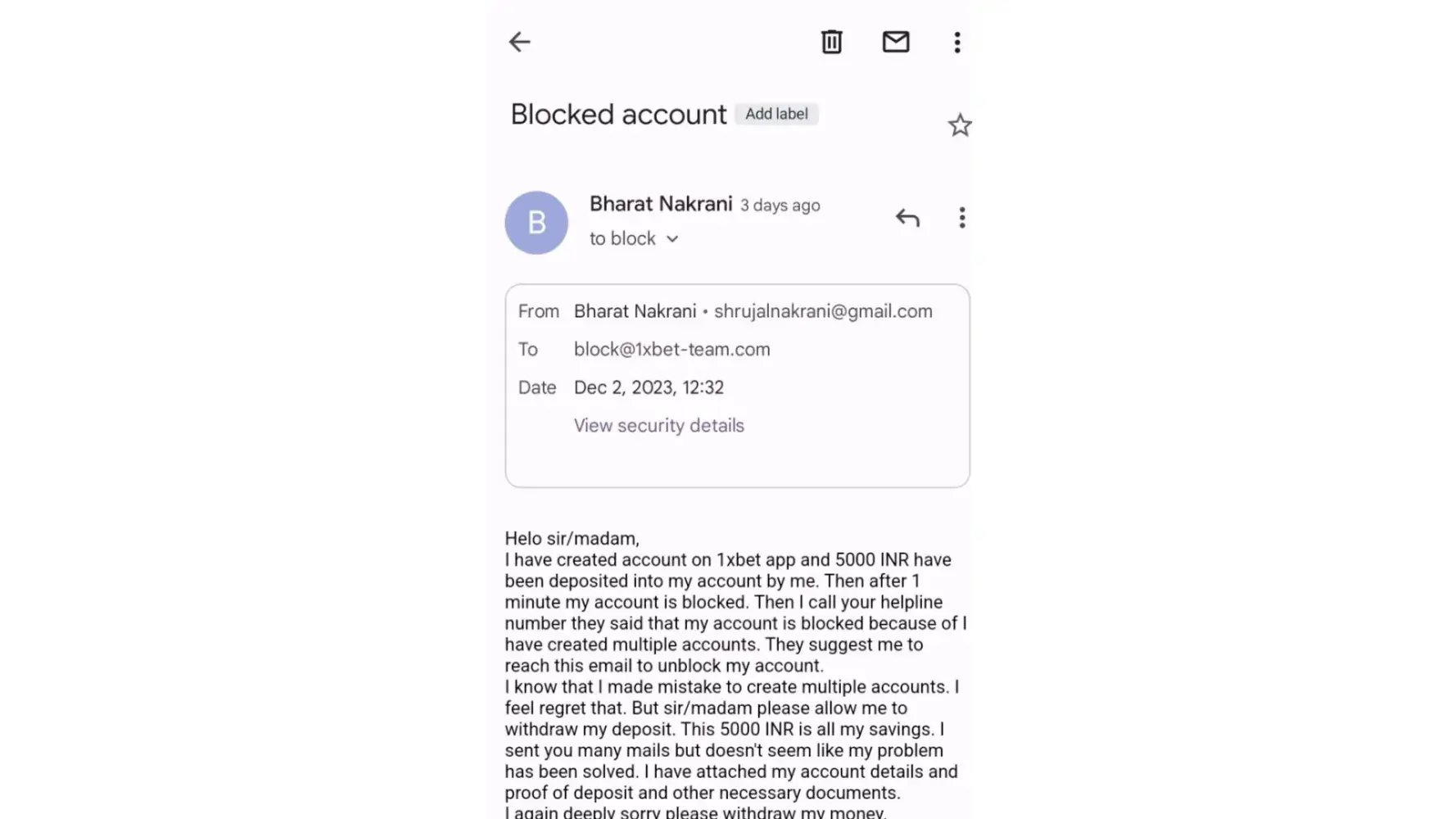 Helo, I have completed you and you gave me reply that i should replyed at block@1xbet-team.com and I have mailed at this email on 2 December, it has been more than 72 hours i still haven't got reply.