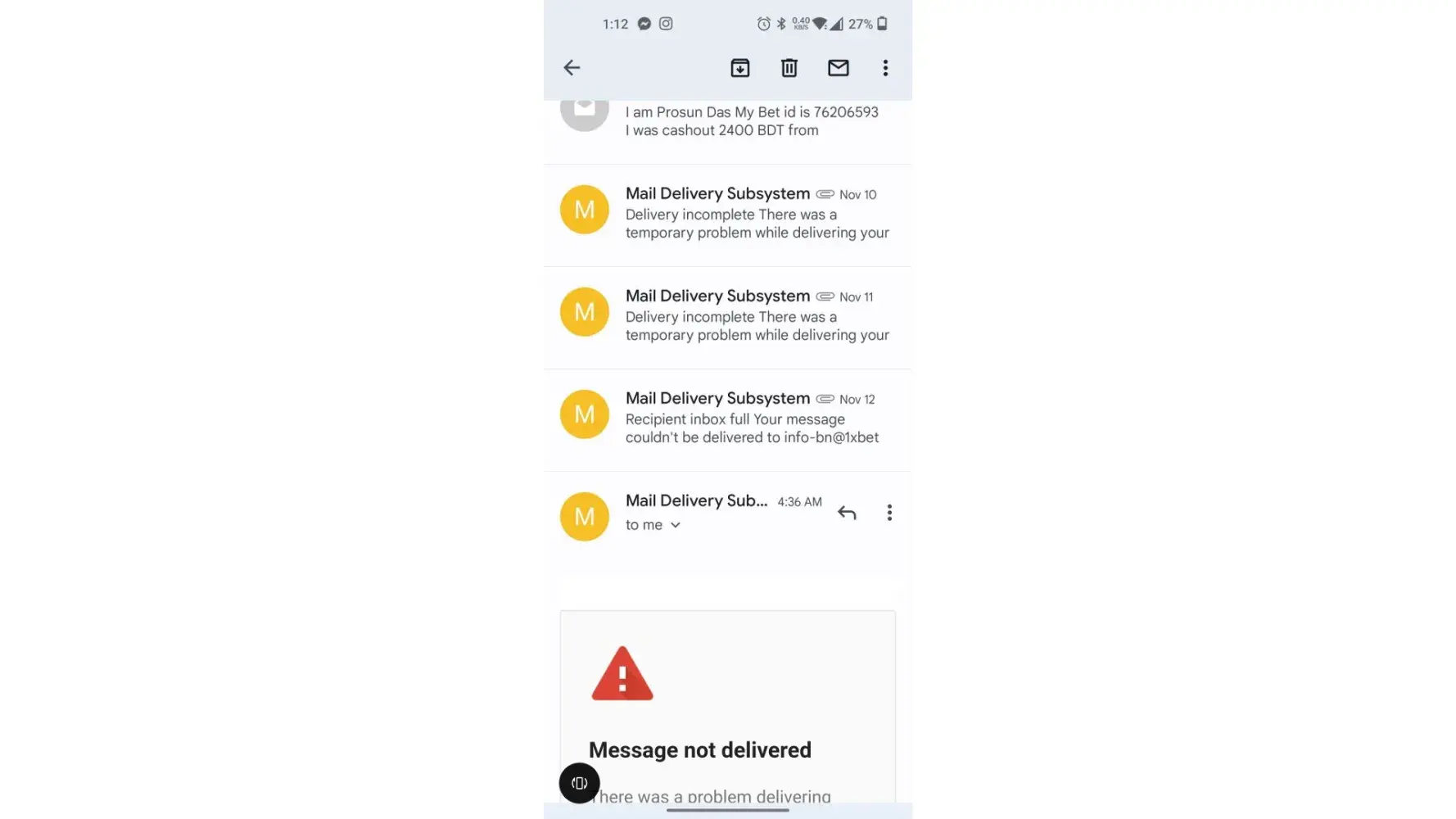 I'm withdraw my money at 1xbet but 1xbet rejected now nd can't return me my money i have sand 500 hundred rs i want return me my money