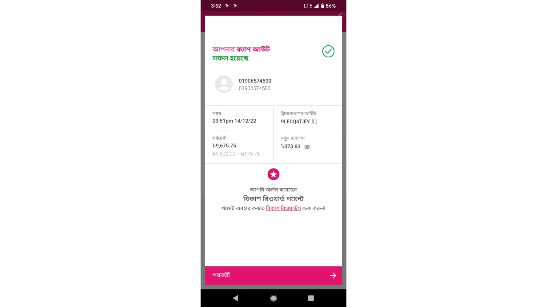 I was cashout 2400 BDT from [protected] to your Fast Nagad agent number [protected]