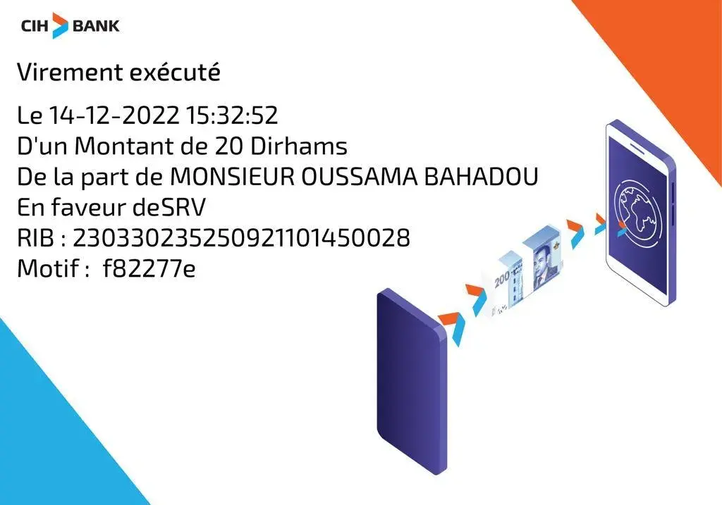 Hello i sent money via bank card morocco cih and I didn't receive my deposit of 20 MAD thank you