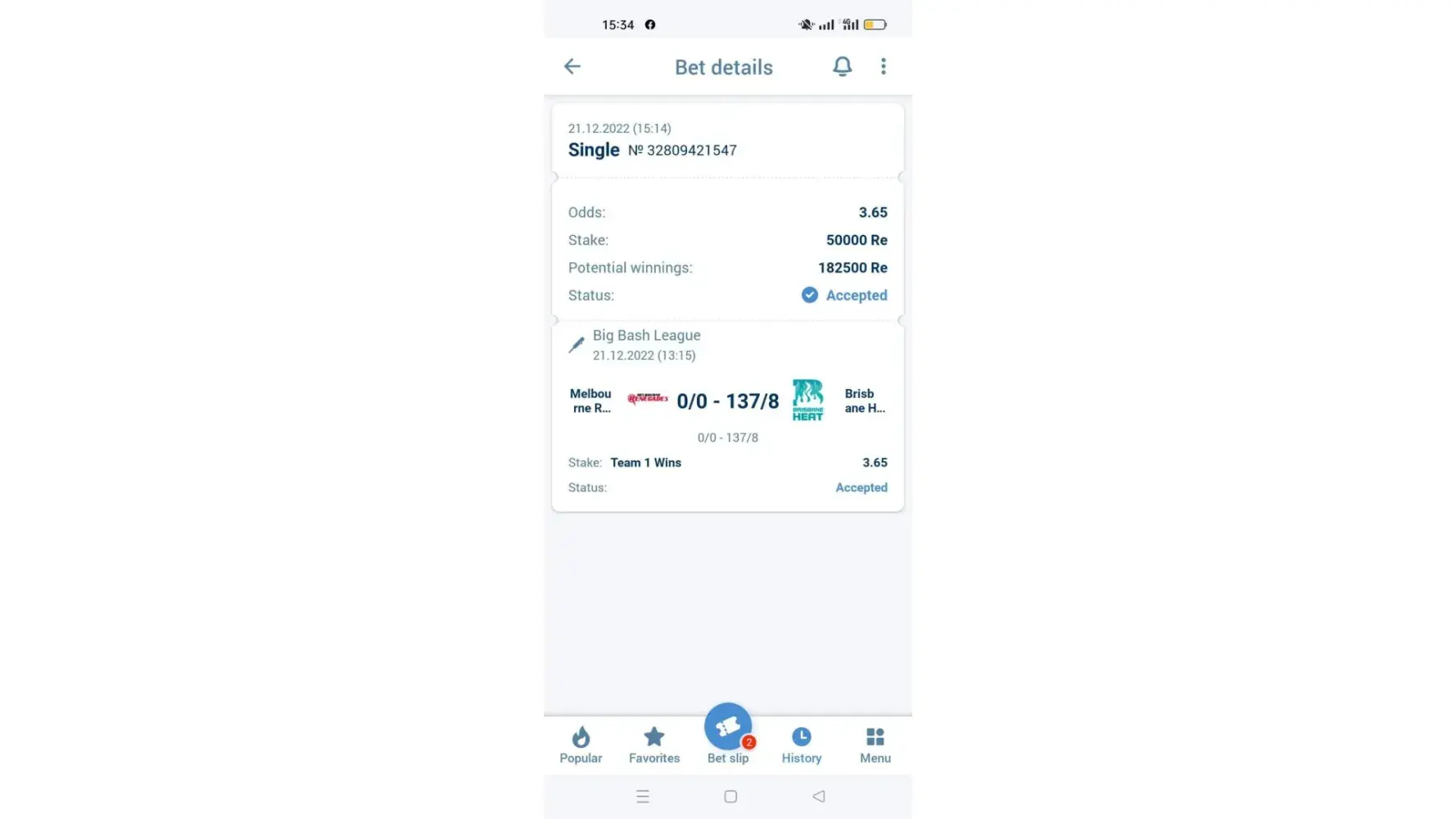 When I bet in bigbash(cricket) the odd is 3.65 after I win the odds has automatically changed in 1.23,I need my amount in my account, please solve this problem.