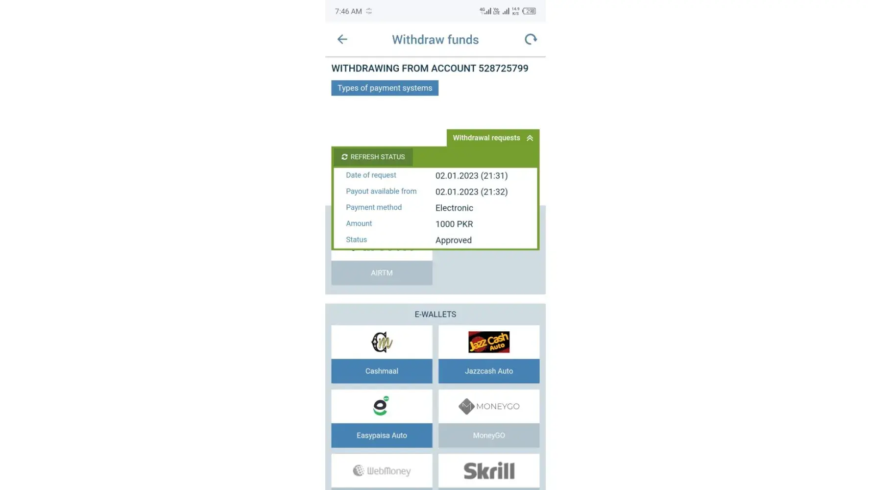 They don't give the money I deposited as if they blocked the account. If you think I gave it, the number you see in the photo sent money to the payfix account 4 times to open the account and asked for it back. After I blocked the account, I didn't receive any money from you...
