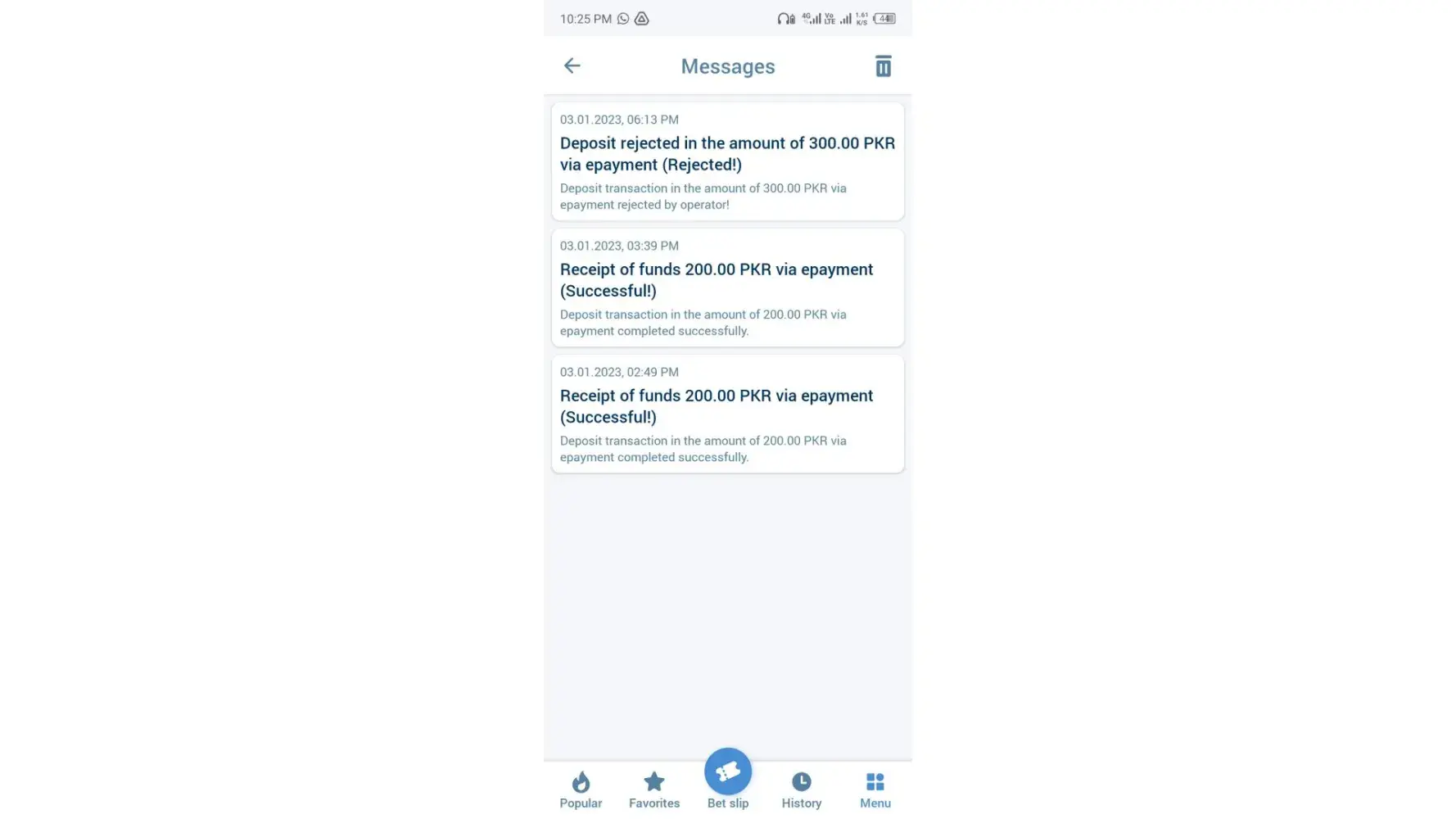 I have deposited rs 7350 in my 1xbet account but money is not reflecting in my account.