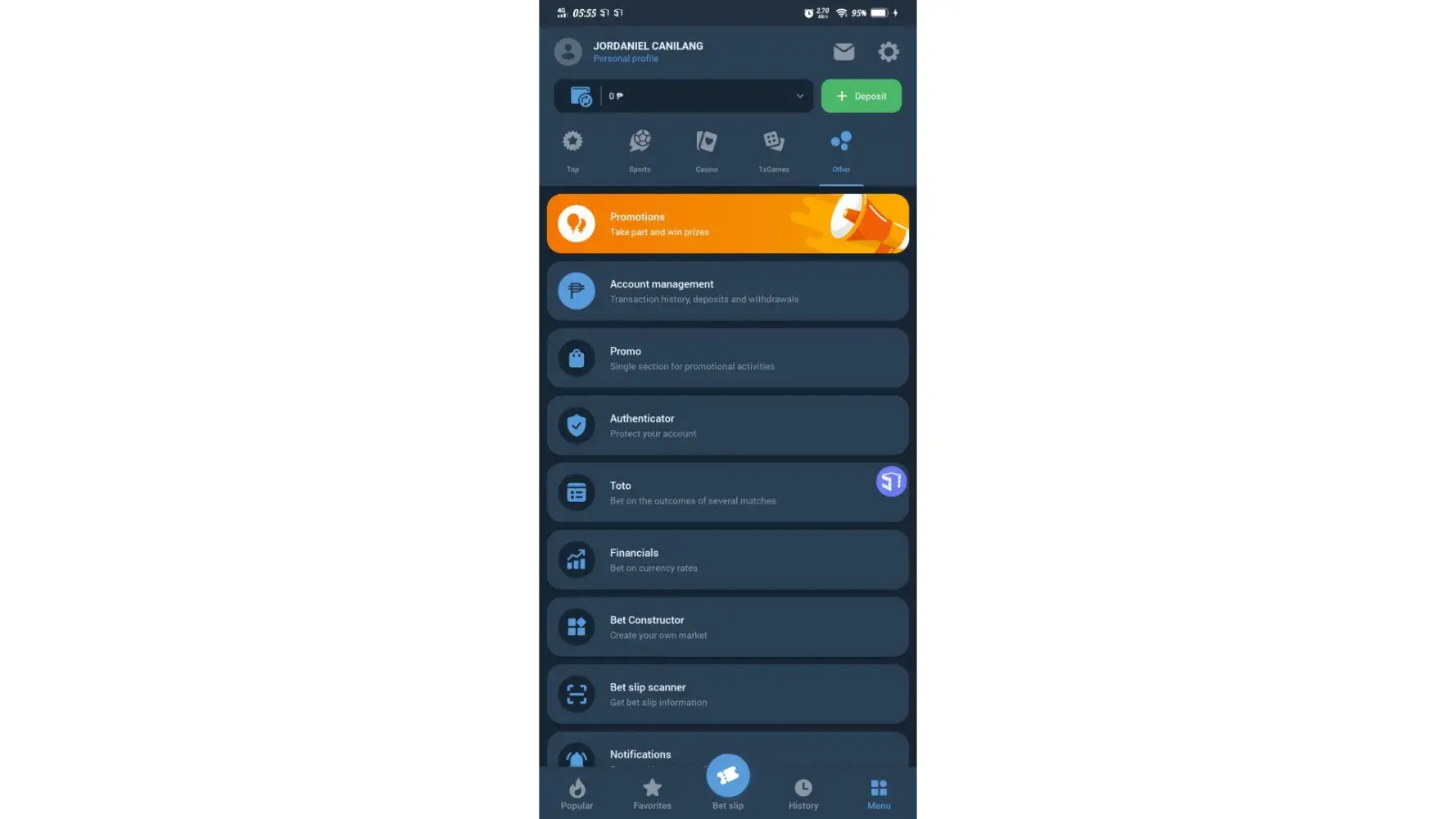 I deposited the money which is 200 pesos under my account through gcash so 1 xbet has the process to do it in order to deposit. So they have an account with gcash which maybe their agent so i send the money to that account stated on the inofrmation that was given by 1xbet itself whoever the money was not credited to my 1xbet account.