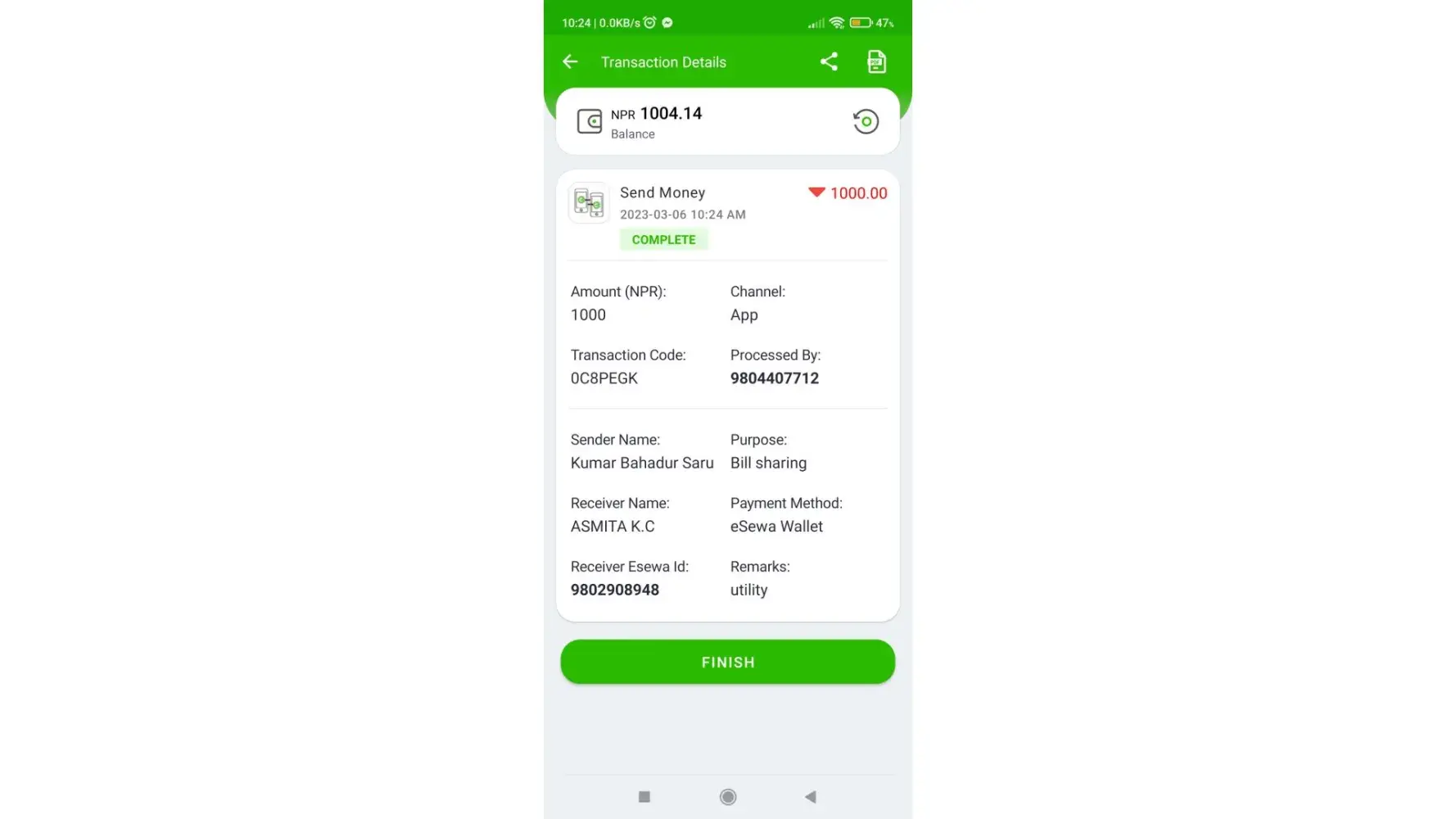 Amount: 2000 taka