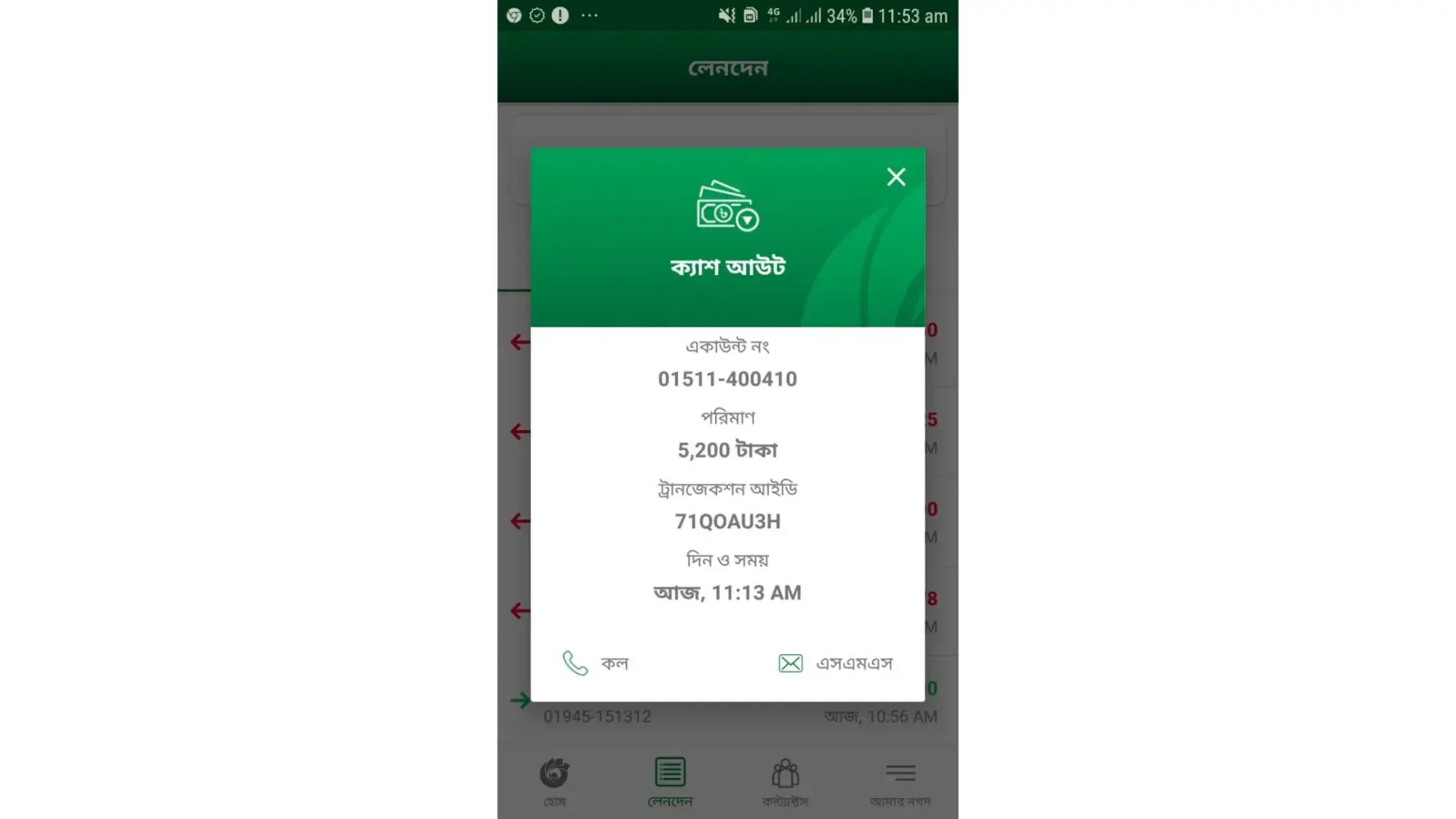 User ID. [protected] TrxID. 71QOAU3H Client phone. [protected] Agent phone no. [protected] Time and date. 11:13 am. 05/03/2023 Amount. 5200.00 BDT