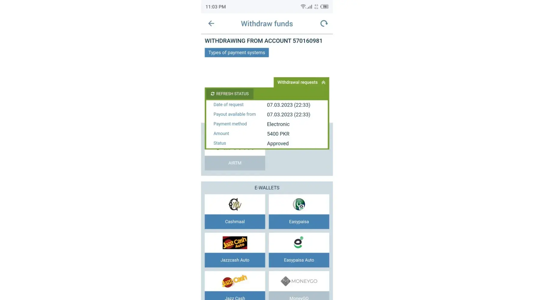 I have with draw 5400 from 1xbet to my easy paisa account after 36 hours ago .. but still my with draw not done yet kindly resolved this issue