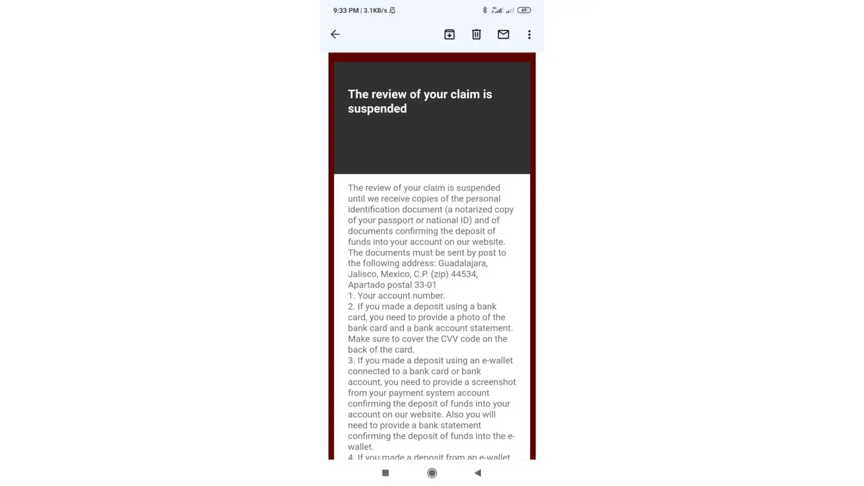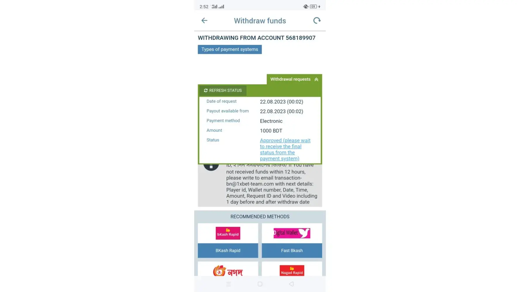 Thank you for reaching out to us. To assist you with this case, we would need some more information on this situation from you. Please don't send any personal data nor information regarding your transaction, as it could be used by scammers (if you can, please delete all the personal data from your review), and contact us at public.relations@1xpartner.com so that we could help you with your situation