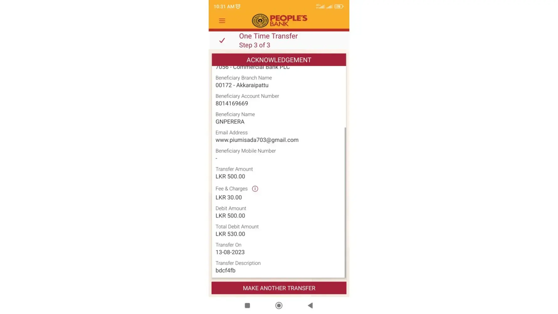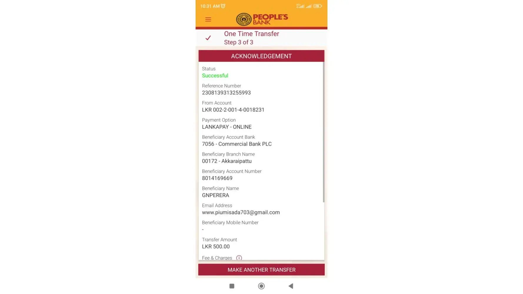 I deposited 10k and the time is shown in the photo and it was rejected. Still didn't get back my money back. Hope u will help me out.