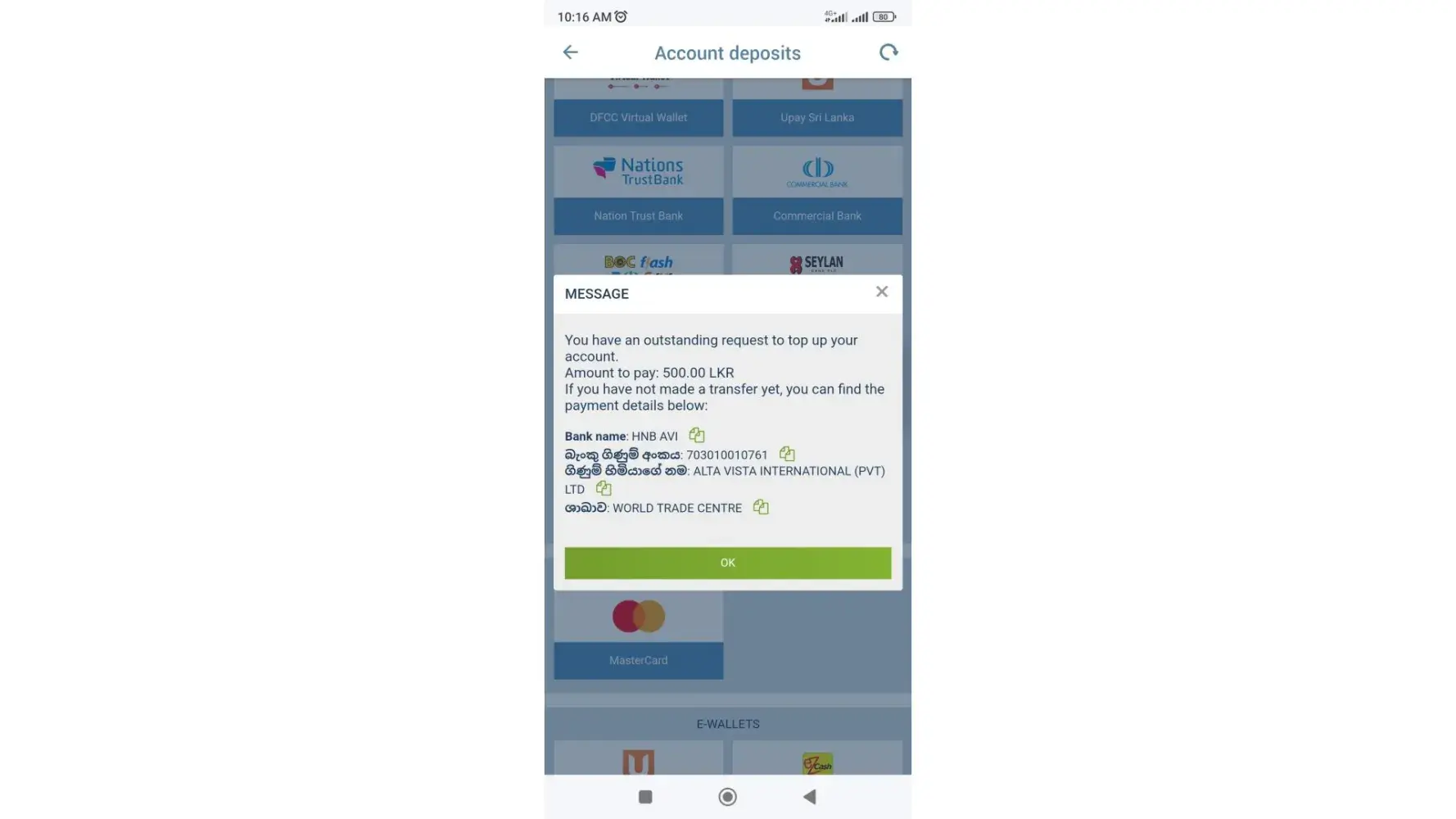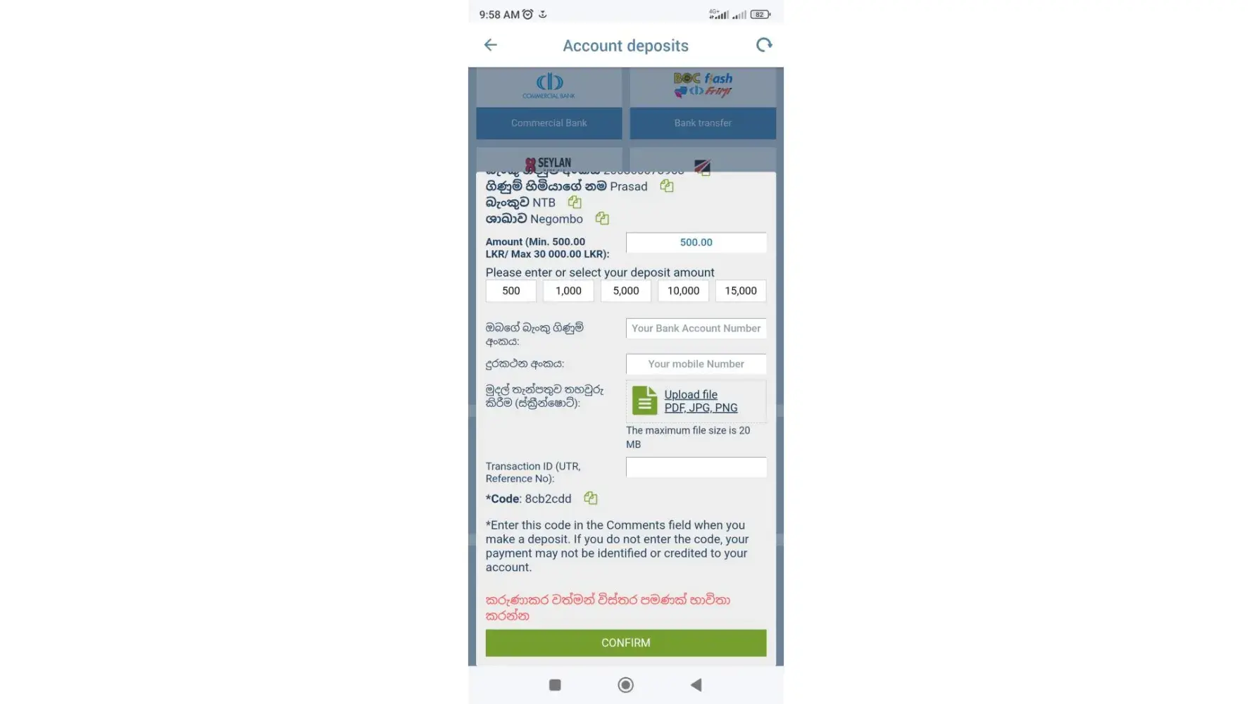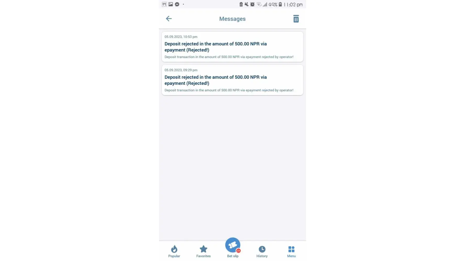My deposit was rejected. I have deposited 500 Nepalese rupees