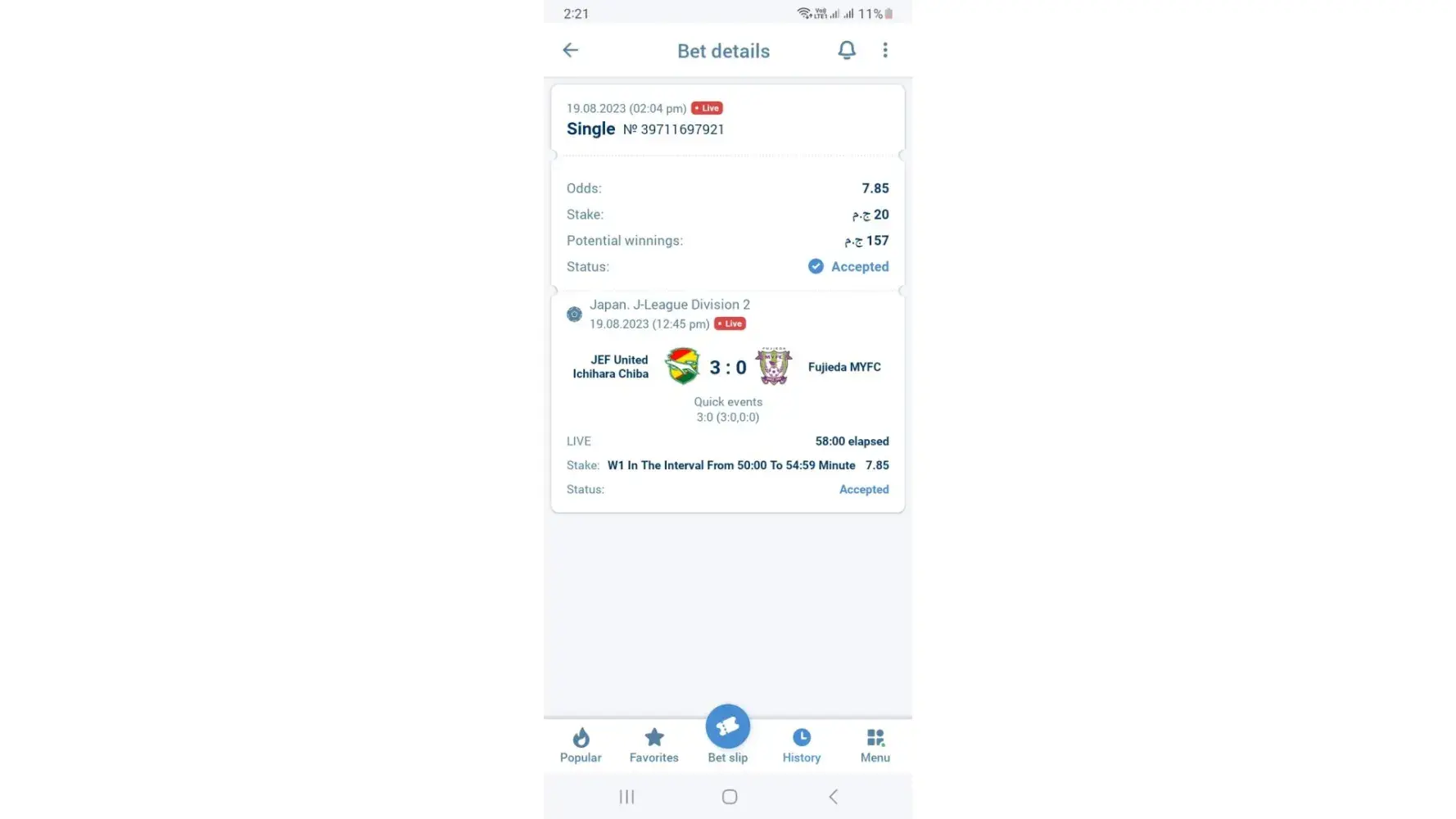 [protected] This is my betting slip. I placed a bet with total over 2 option, the game ended with a total goal score of 3 (2-1) instead of a win I got a refund. Why ?