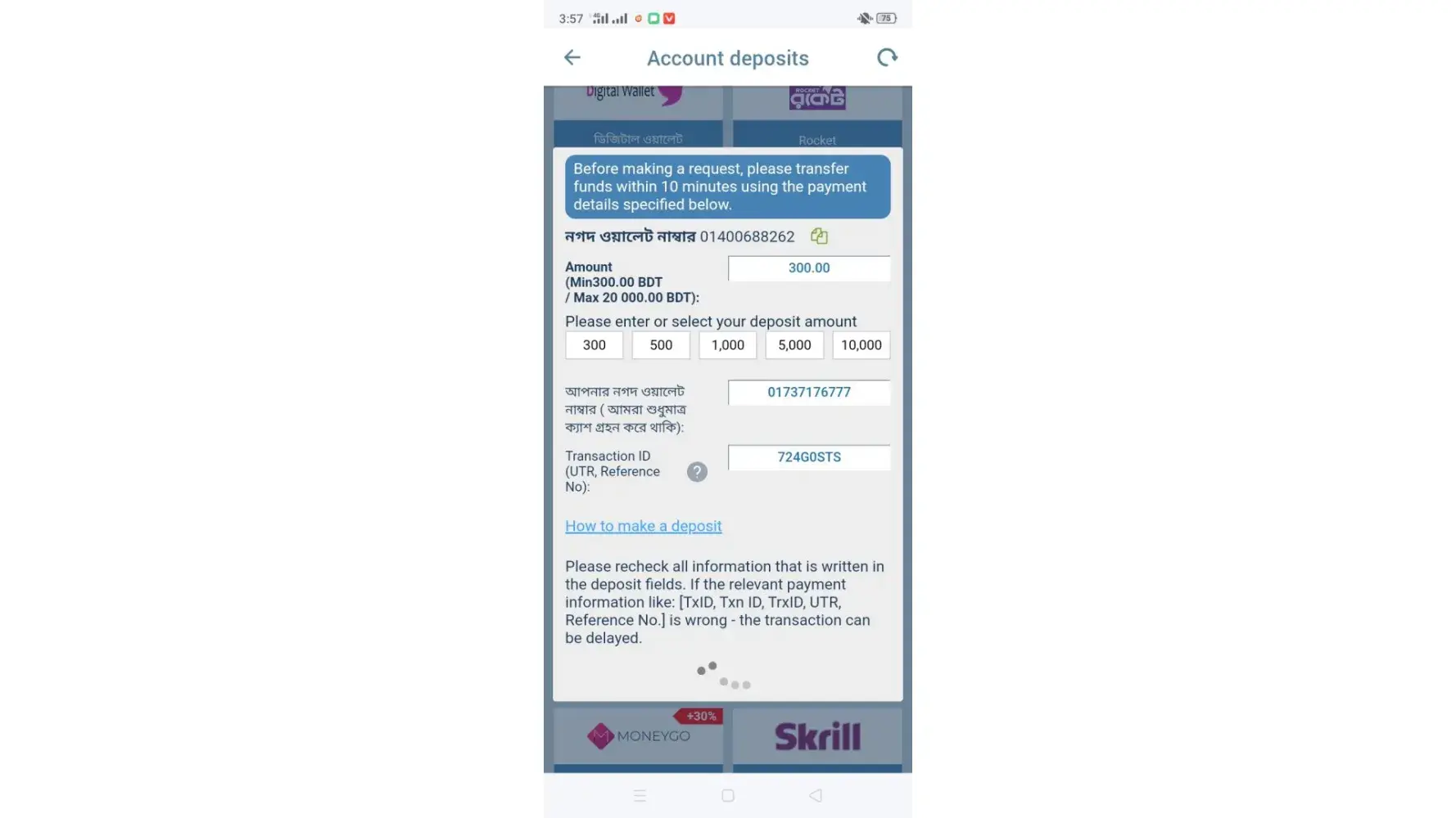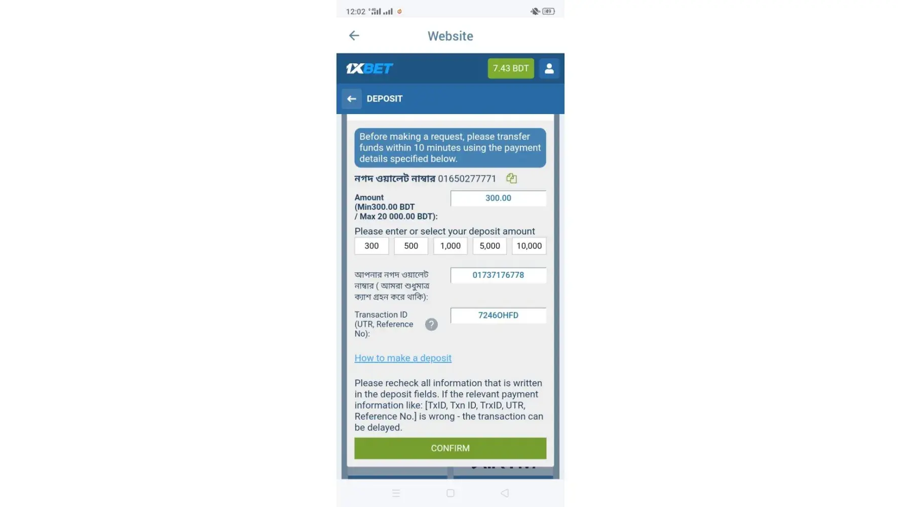 1xBet - Deposited inr 2300 not credited to 1xbet account 11