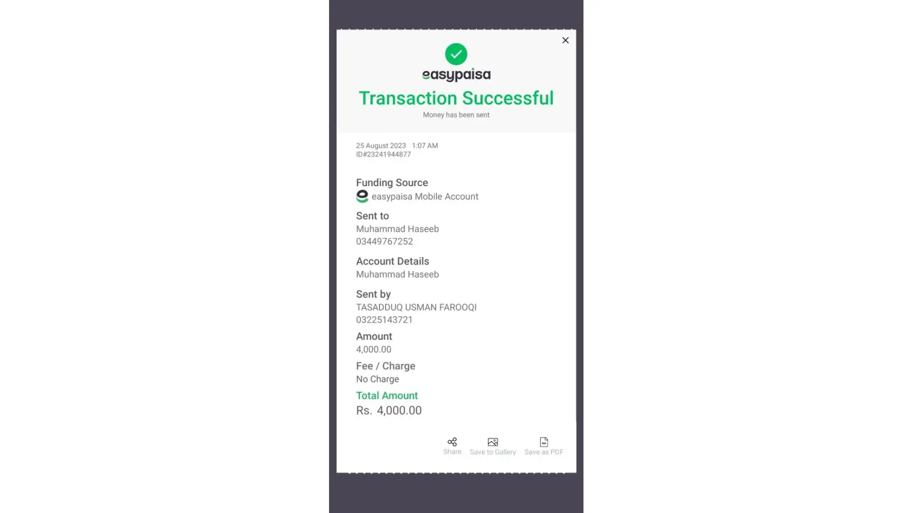 I deposited 25500PKR but i have not received the money although it is deducted from my account.