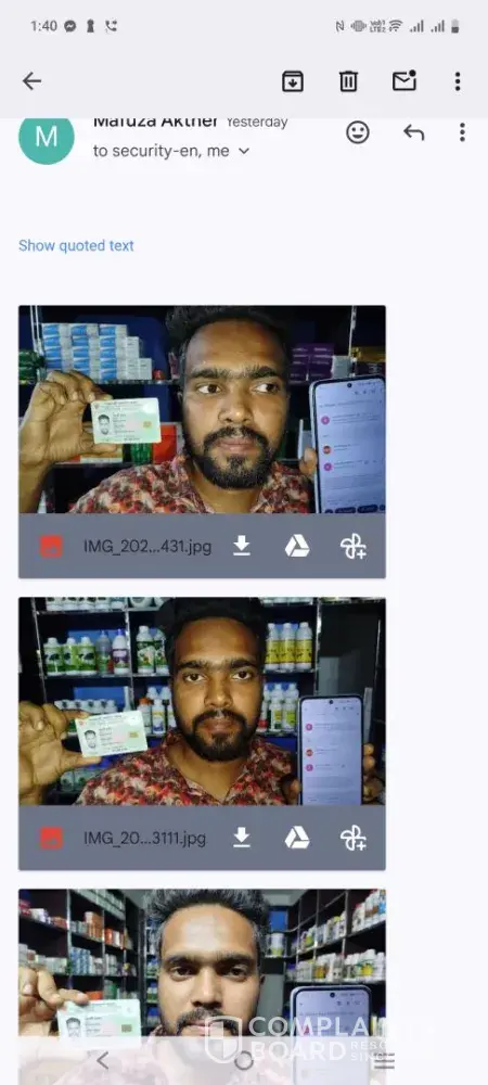Despite providing all required verification documents from my registered email, including: