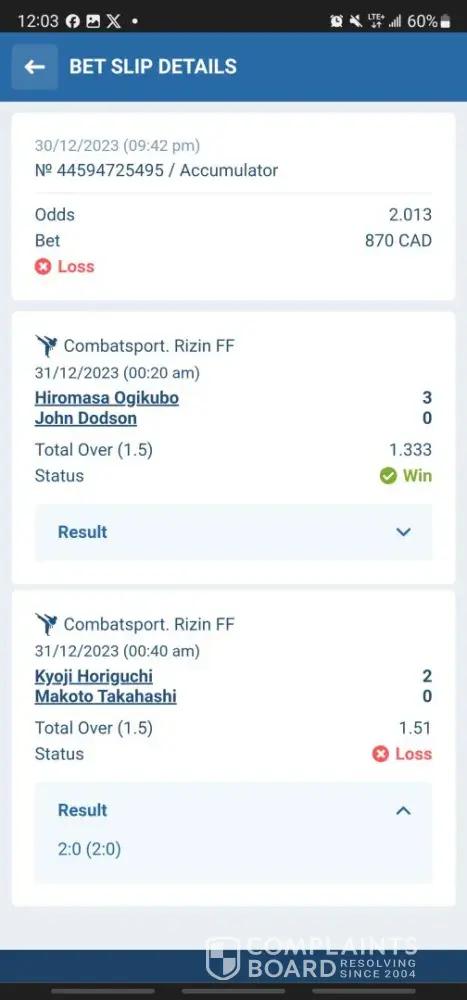 2 Sources for the outcome of fight which was incorrectly marked in my bet: https://www.tapology.com/fightcenter/bouts/823172-rizin-45-kyoji-horiguchi-vs-makoto-shinryu
