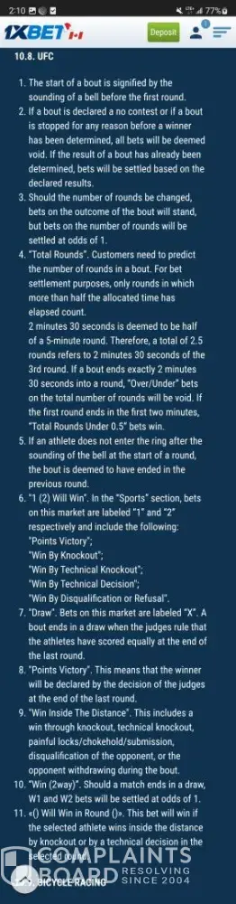 Also according to your TERMS AND CONDITIONS https://1xbet.com/en/information/rules/10 (10.8, subcategory: 4. Total Rounds"), it states "Total Roundsâ€. Customers need to predict the number of rounds in a bout. For bet settlement purposes, only rounds in which more than half the allocated time has elapsed count.