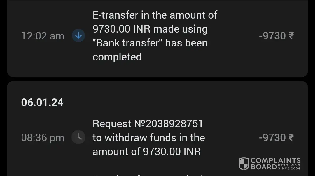 I've withdrawn ₹9730 indian rupees on 6 January 2023, on 7 January 12 am around I got notification that withdrawal is successful. But today is 19 January and i still haven't received money in my bank account yet.