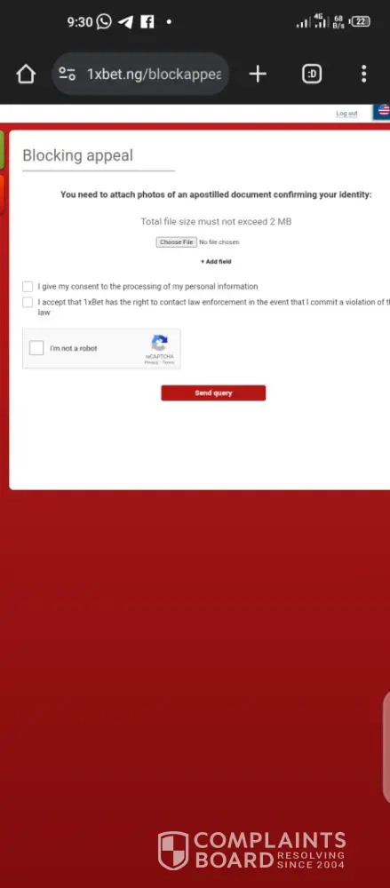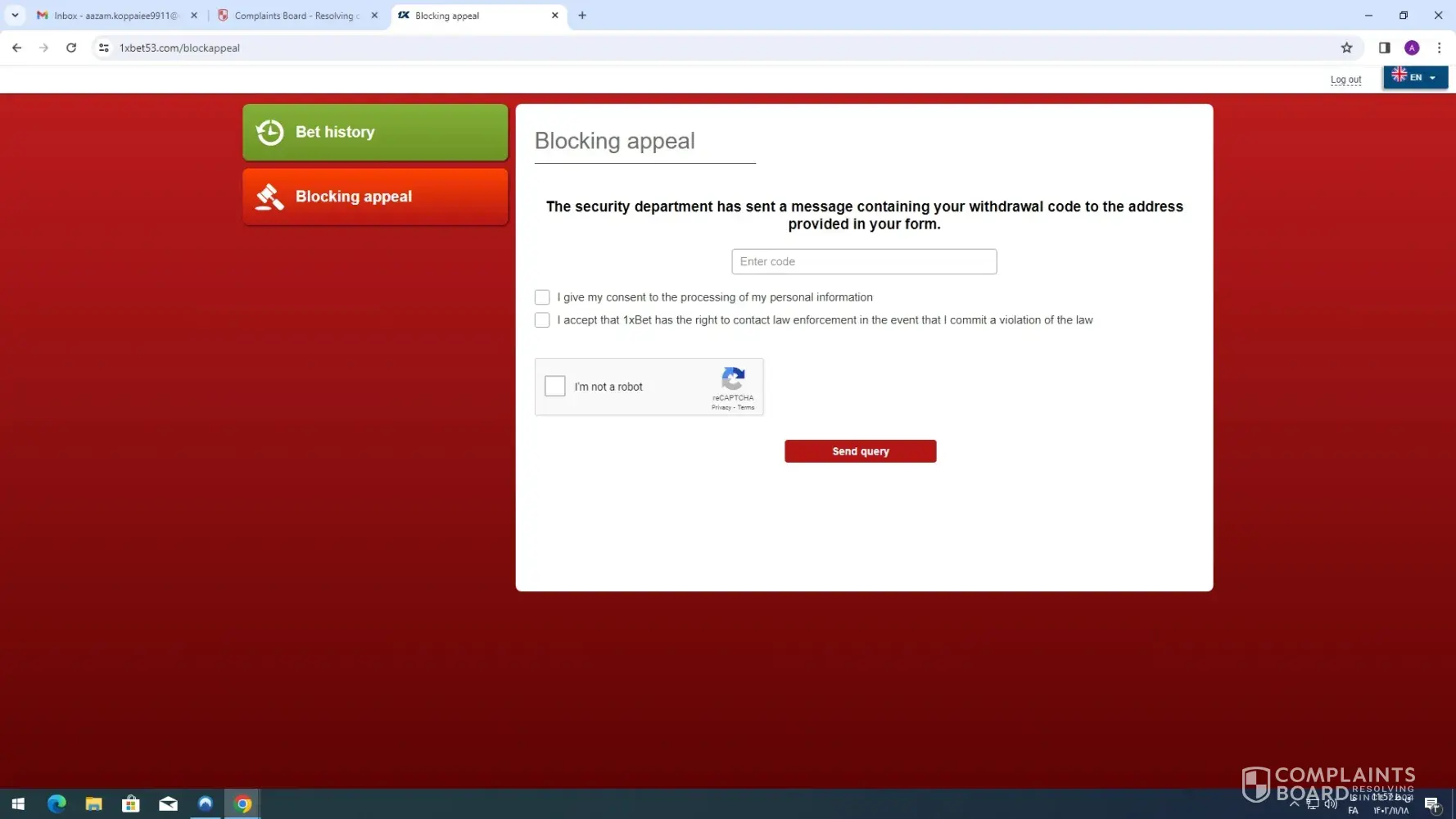 Its been 72 hours, if i will not reply my complaint will shown as resolved but its been 13 days there is no update from 1XBET.