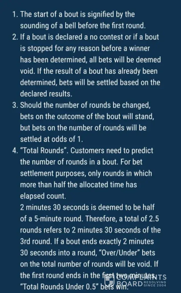 More importantly, you did not respond to my point about the bet being listed as Over 1.5 rounds. This is very misleading, as listing a line that says 1.5 rounds implies that half of a round will determine the settlement.
