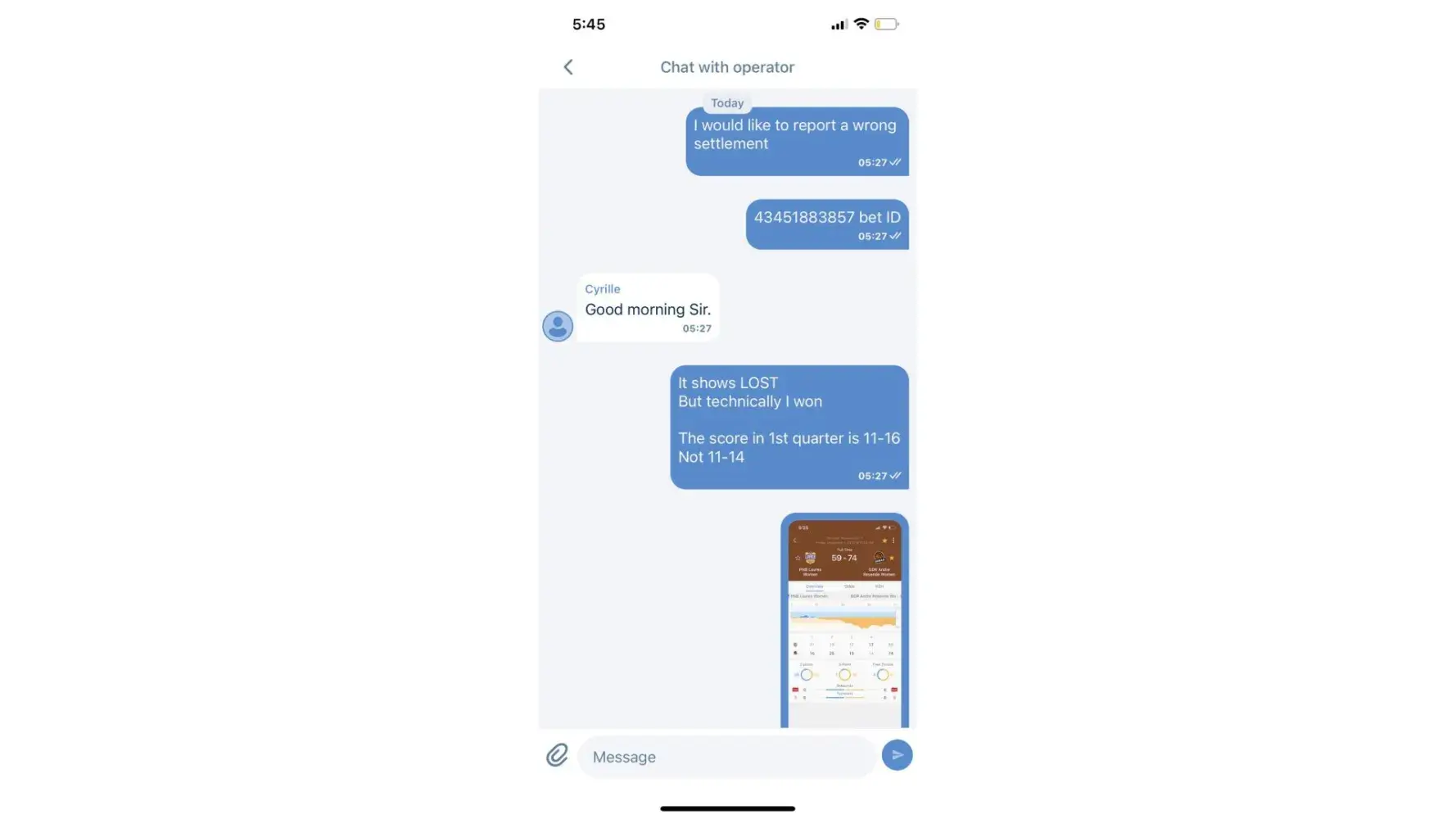 Desired outcome: I need them to settle the correct result and pay my PHP 2000.00 bet