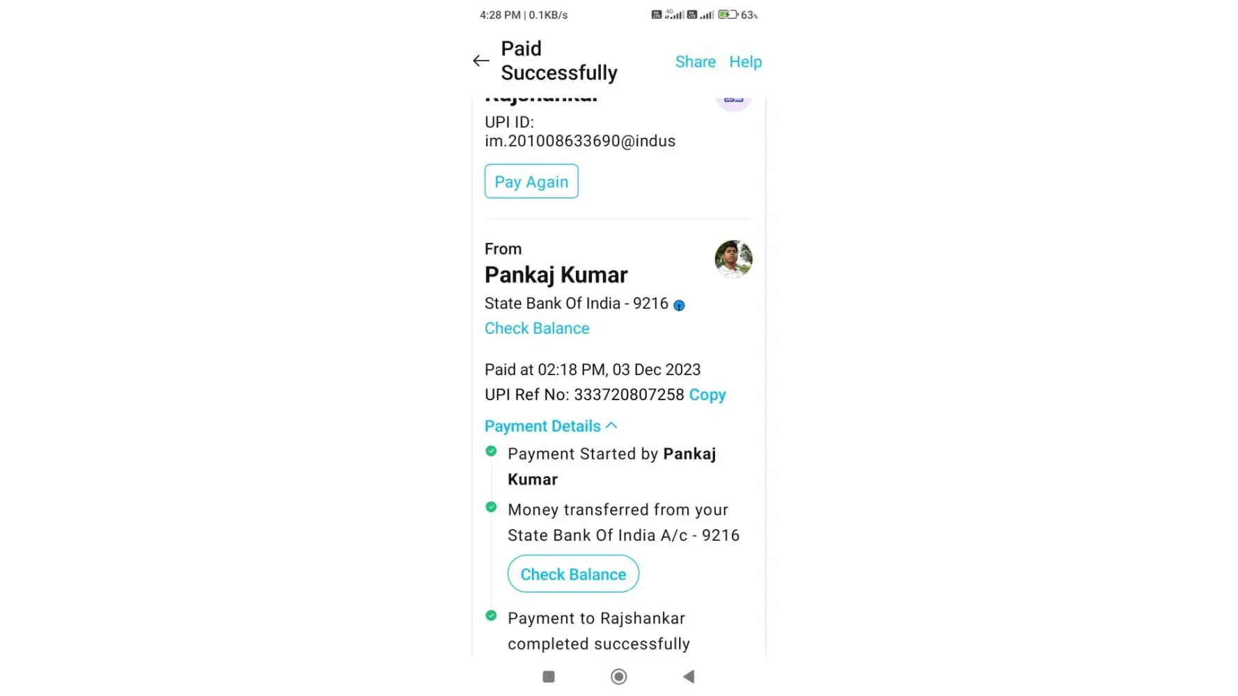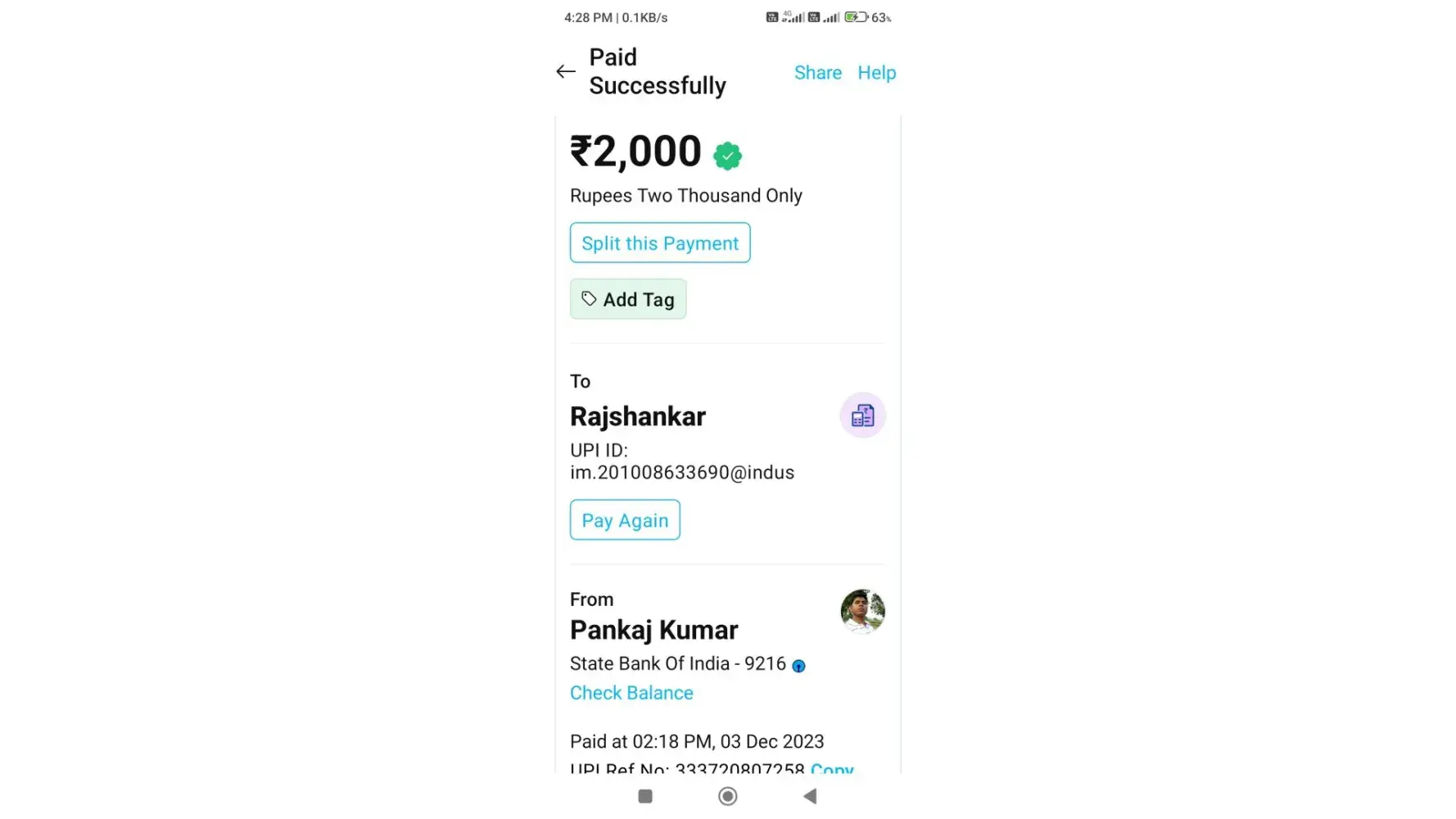 Sir maine UPI I'd Rajshankar [protected]@indus ke account ₹2000 date 04/12/23 ko diposit Kiya lekin utr nom
