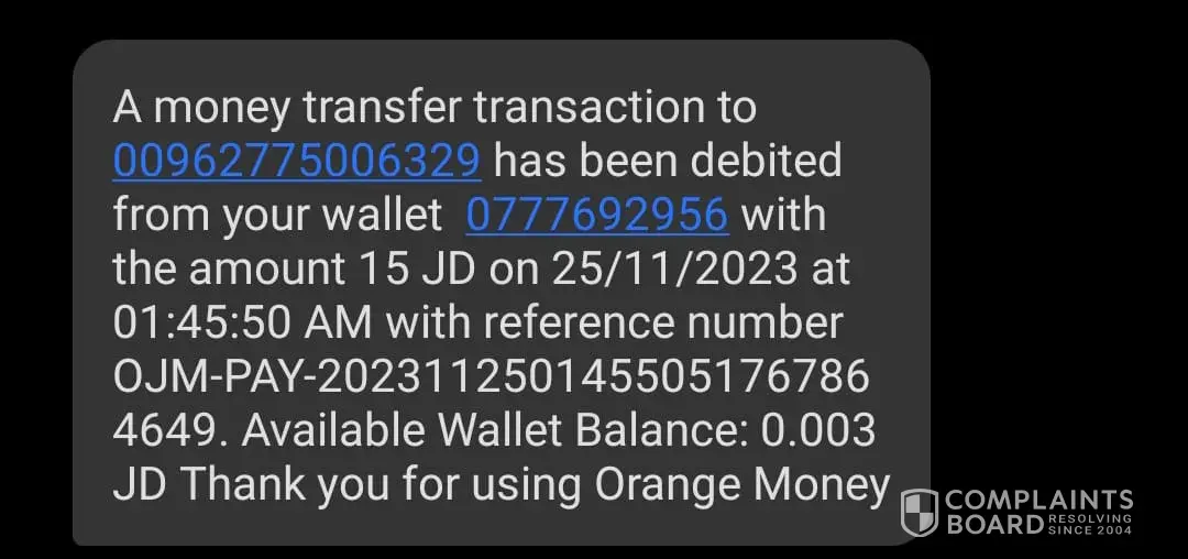*i paid 15 Jordanian dinars on the 25th of November 2023 at 1:45 am (jordan time) no deposit has been credited to my account