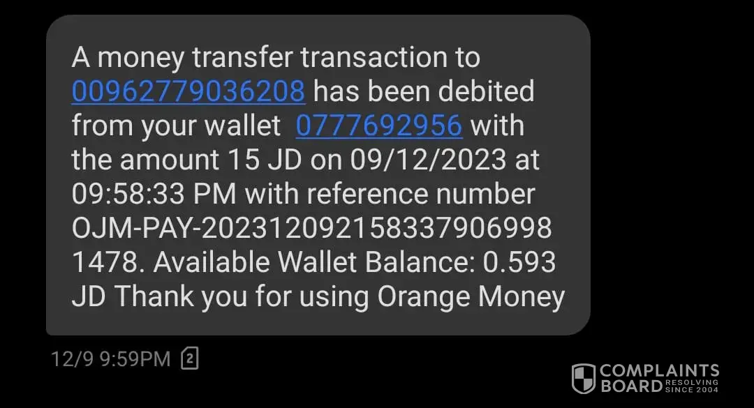 *i paid 15 Jordanian dinars on the 9th of december 2023 at 9:59 pm (Jordan time) also no deposit has been credited to my account