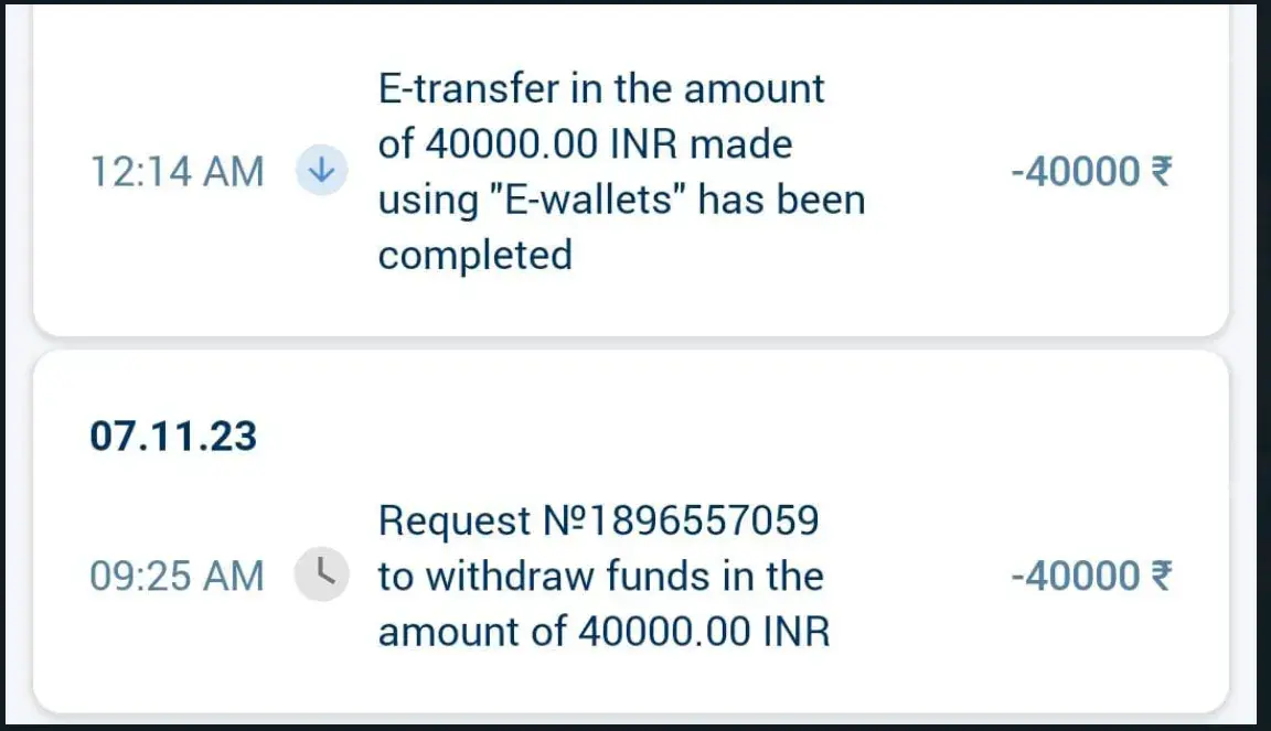 I made a withdrawal of 40000/- (forty thousand rupees only) on 7th November 2023 but app shows withdrawal successful, but I didn't get the money till now and there isn't any reply from your side regarding the issue.