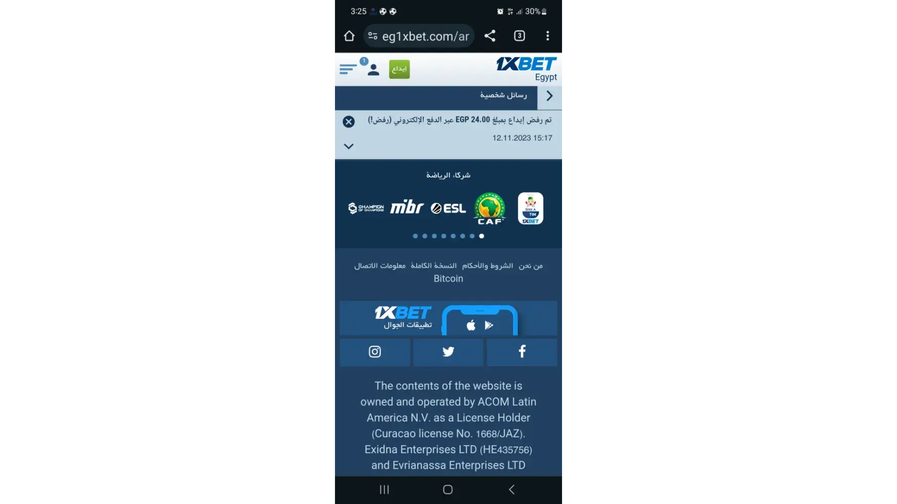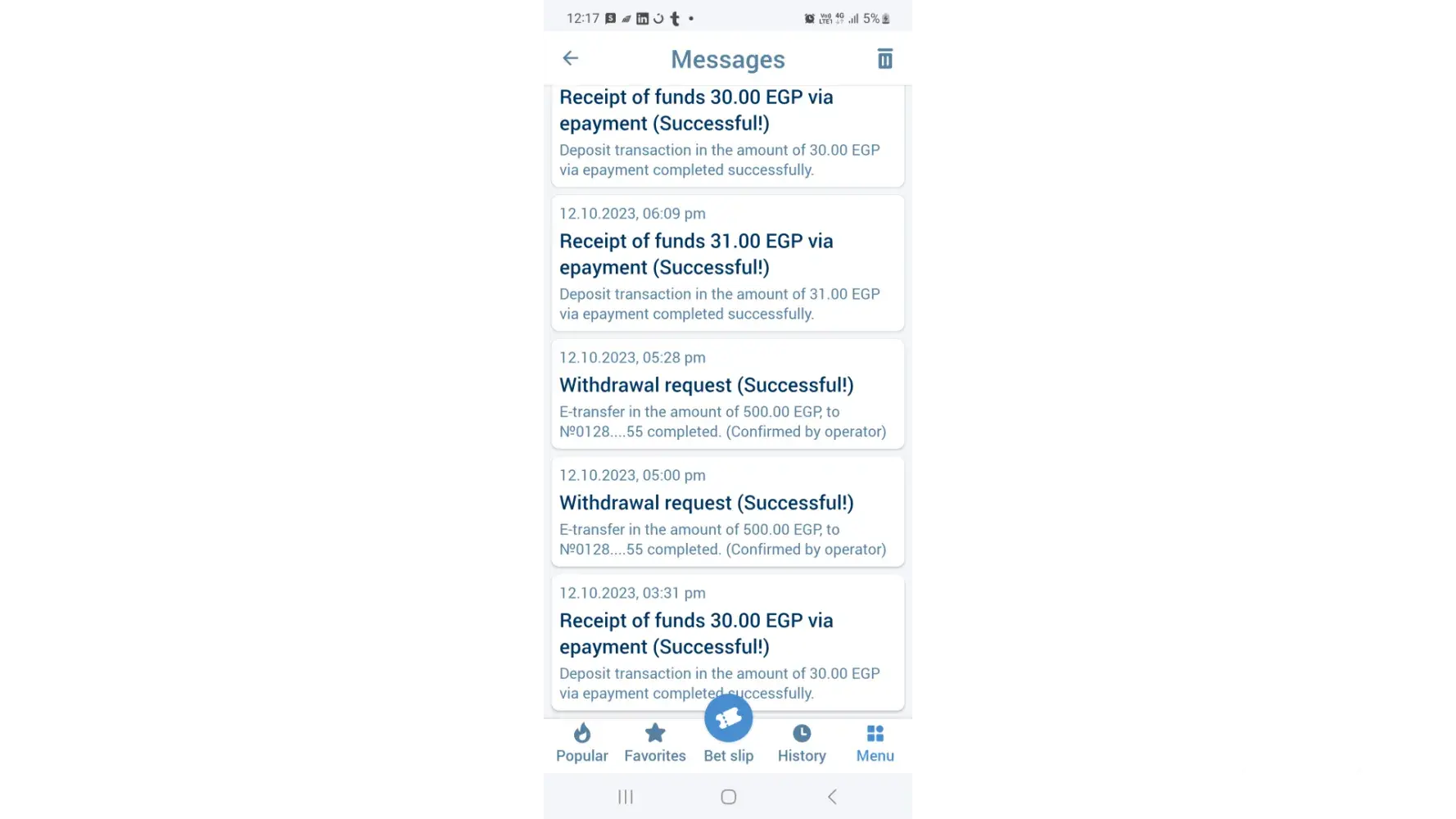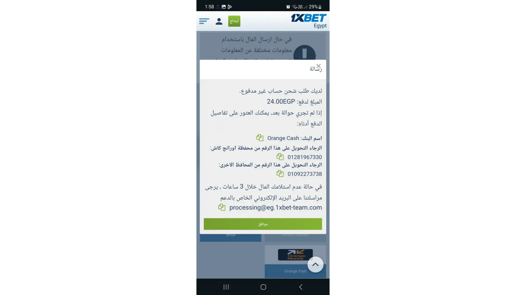 At 12/10/2023 i made withdrawal 500 le two times . One of them transferred and the otherd cannot transferred . I sent many emails to [protected]@eg.1xbet-team.com