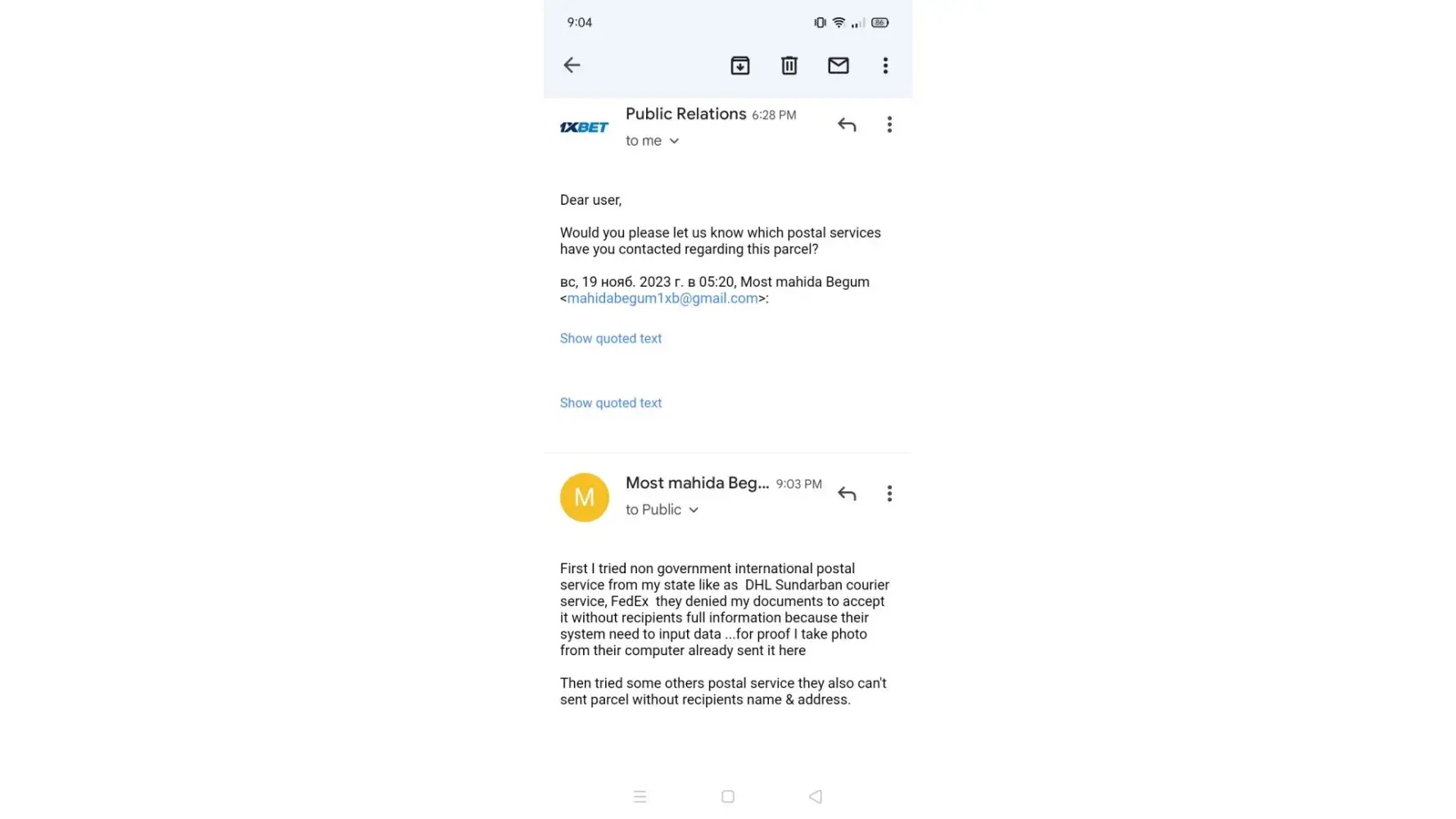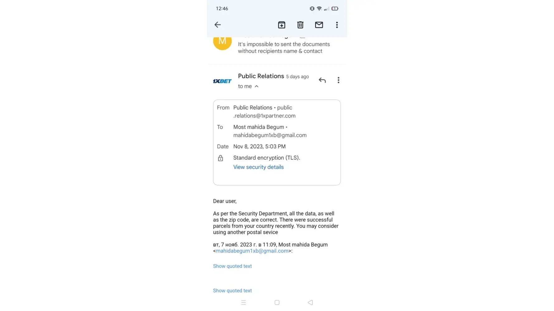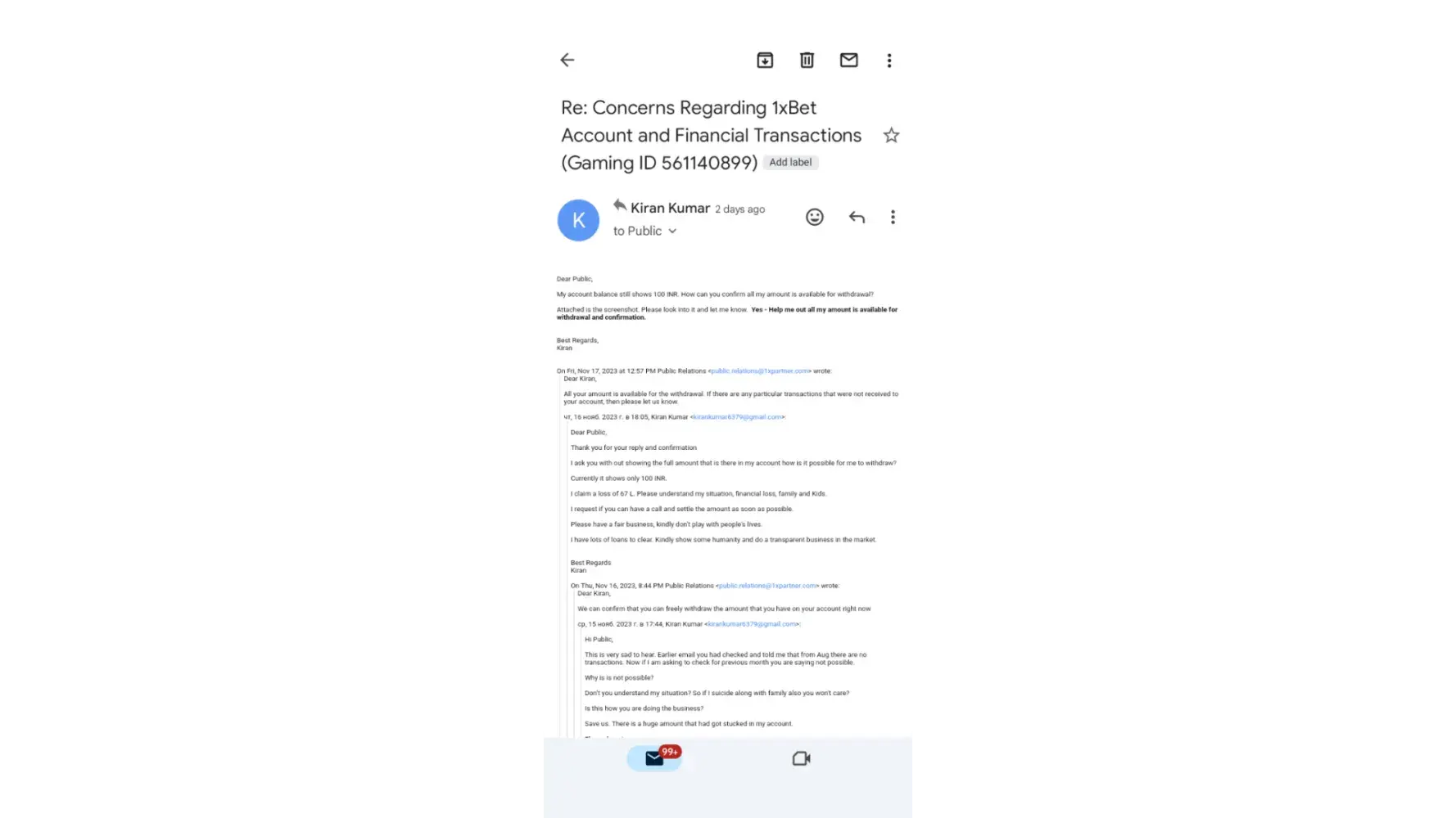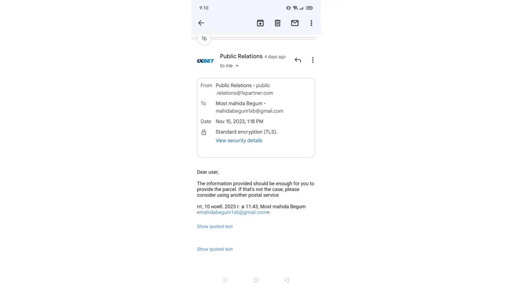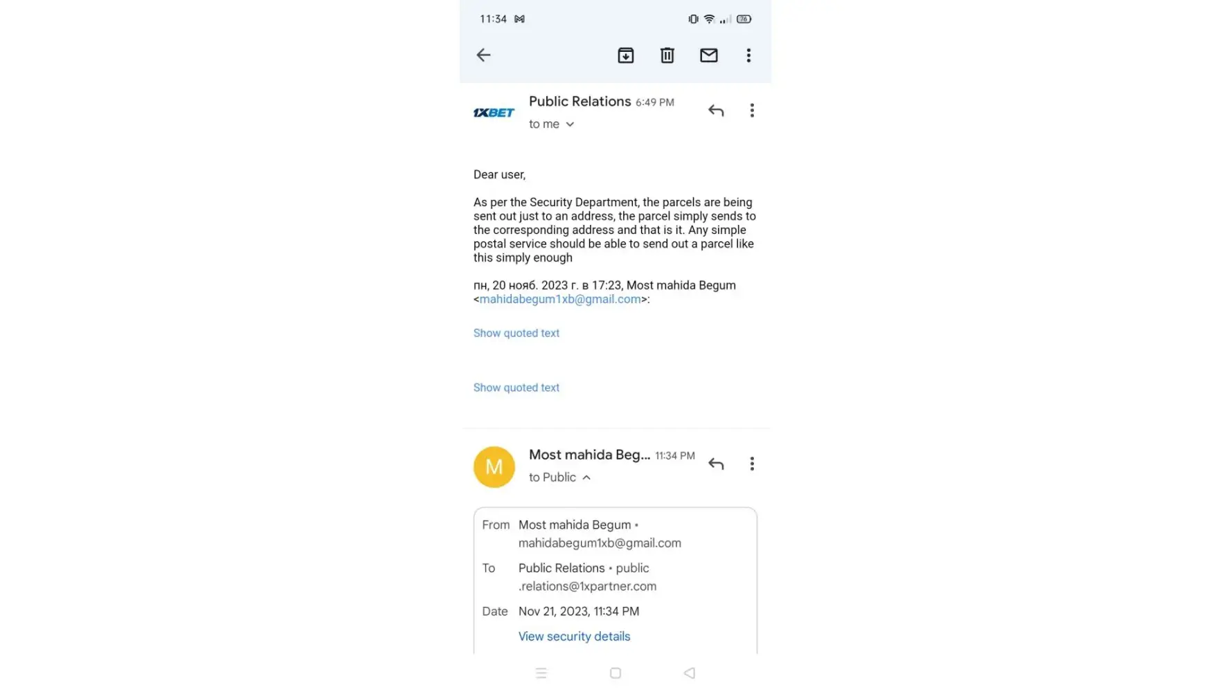 Don't reply same thing again..let this finish here ... Don't break the trust from 1xbet.