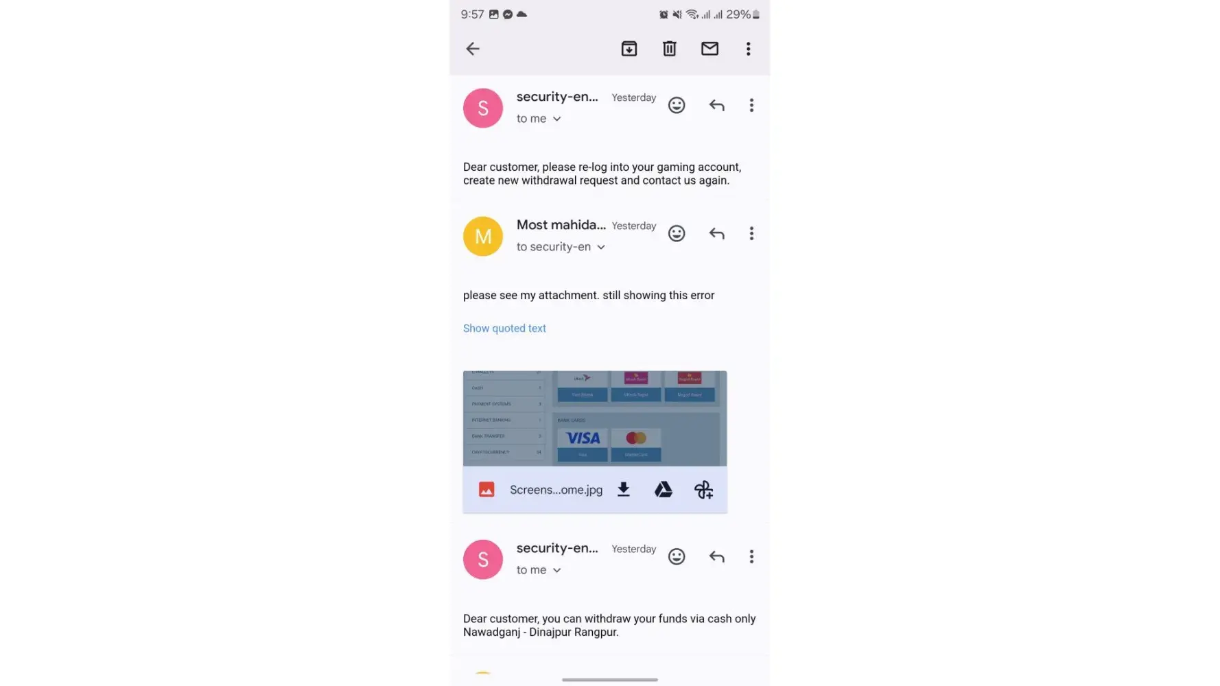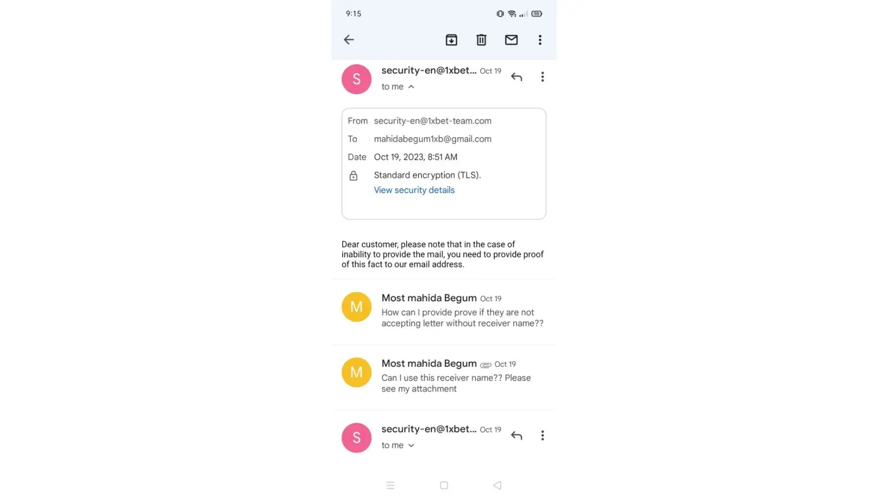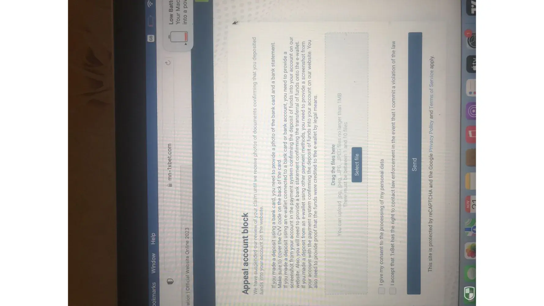 The security department requested to me my NID notary documents & online form which is provided from 1xbet.. I attached some extra documents also like as my NID copy..