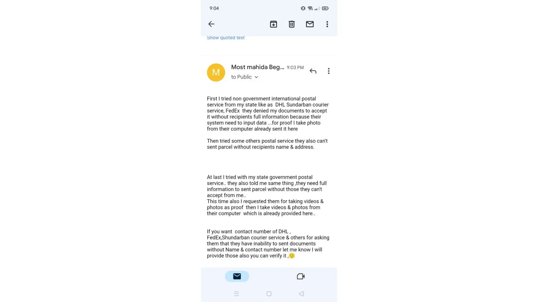If you investigate my case please provide me a valid address with recipients name contact number I will send those documents within 6-7 days.. otherwise allow me to send my notary documents any other way..