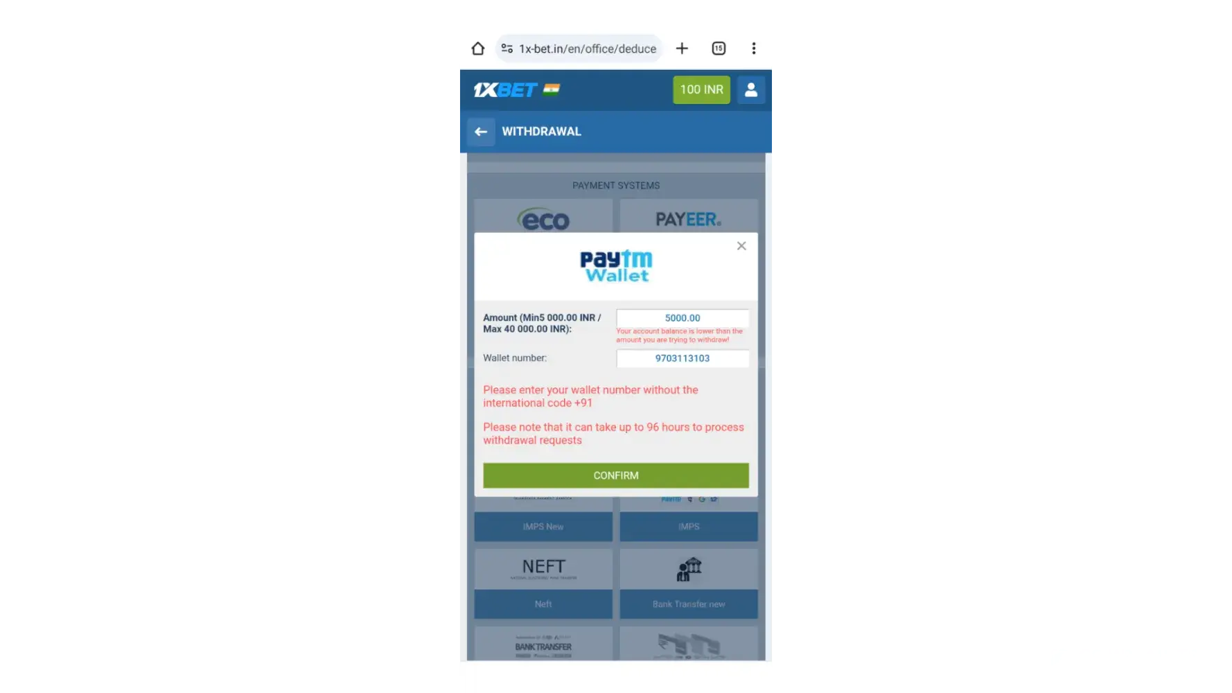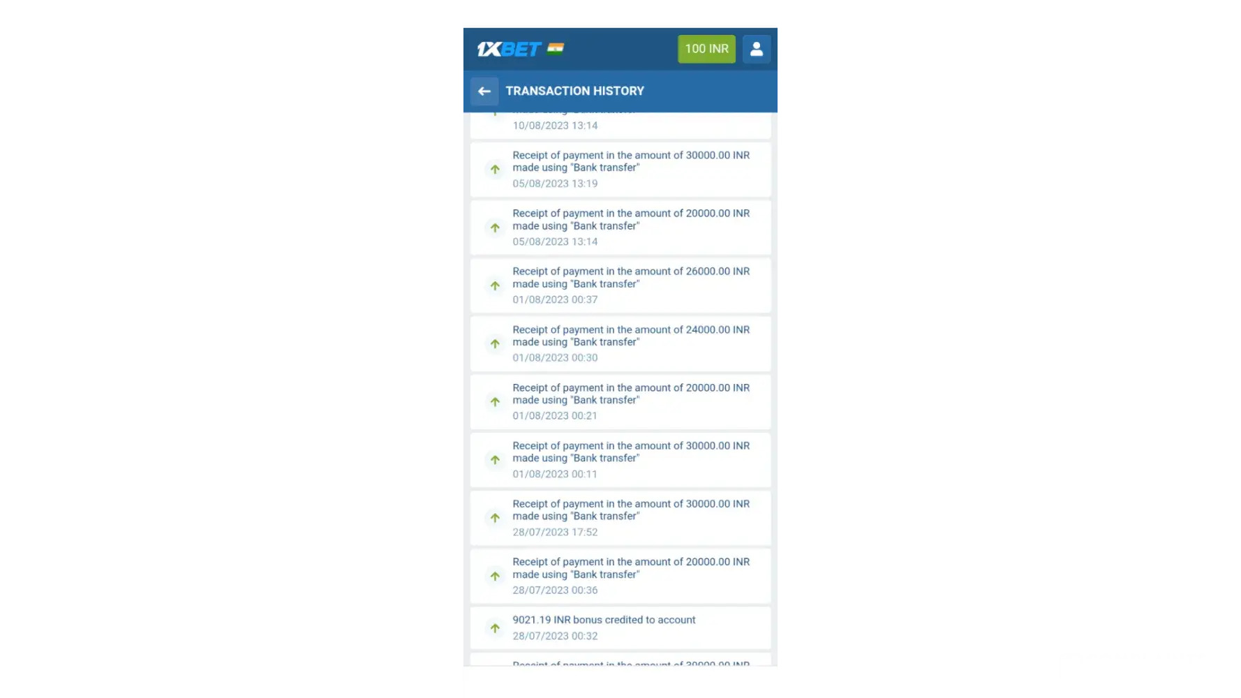 money not credited to my 1x bet account (3000rs)