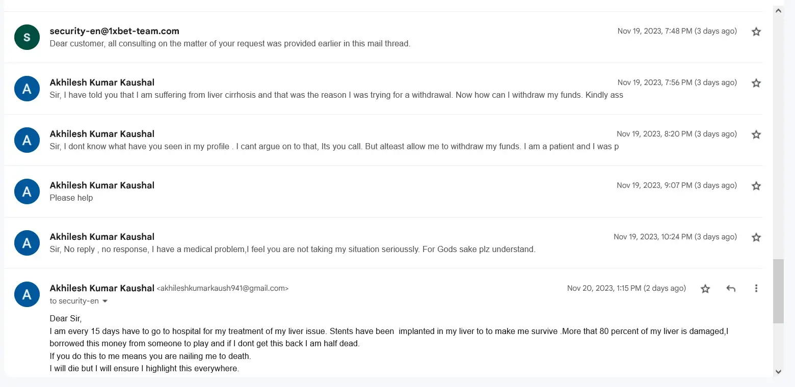 I am suffering fro a serious liver problem (Liver cirrhosis), I am undergoing a treatment because of this I have to leave my job n everything. And I put my money in 1xbet so that I could earn some money to help me out in my treatment and instead my is blocked and not allowing me to withdraw.