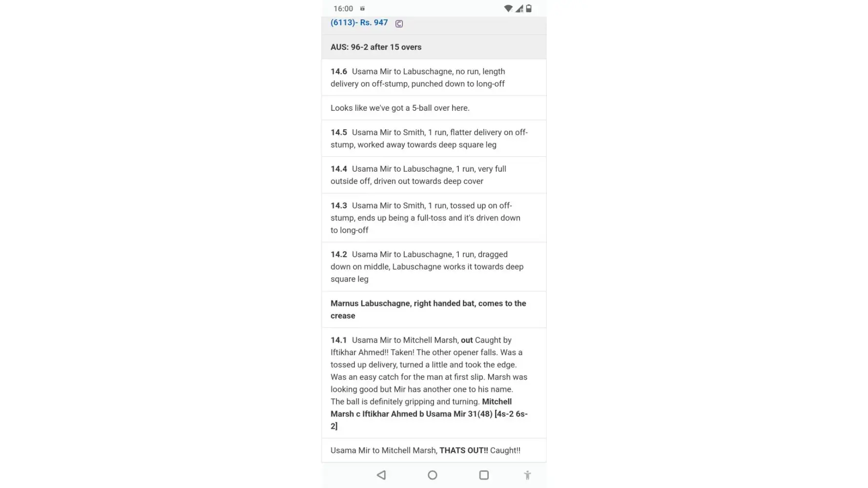 My bet 15 over Australia score 96.5 over run means 97 run in 14.6 balls