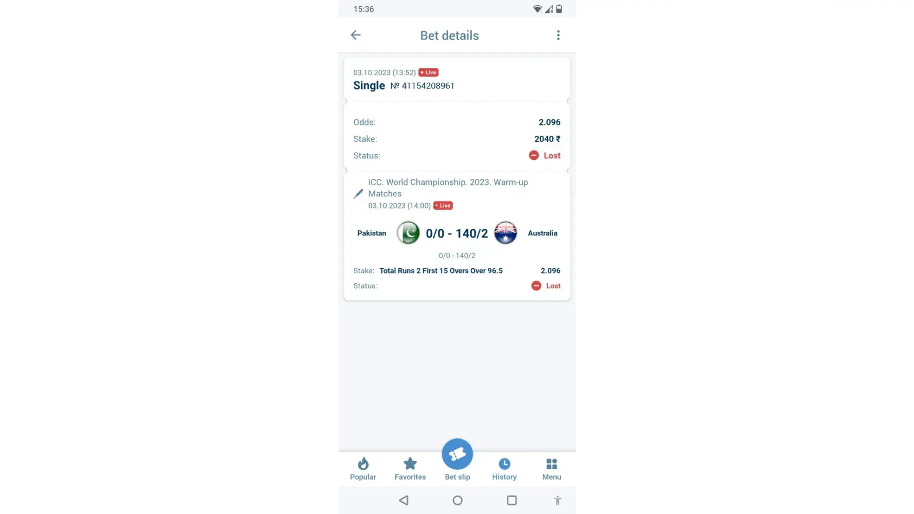 Read full complaint and 1 commentI bet on Pakistan vs Australia 03 oct match