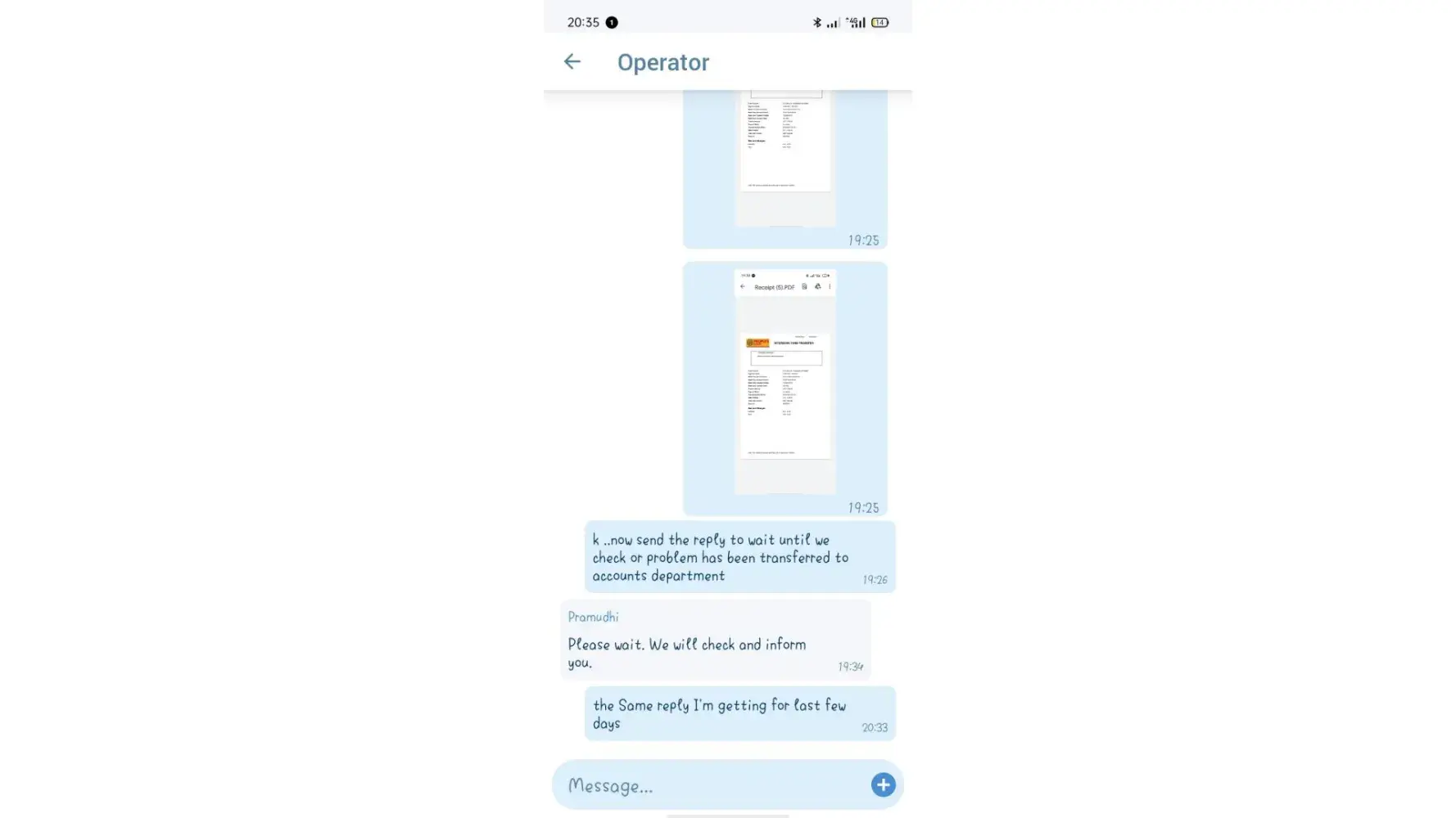 Mene 14000 deposit kiye the 25/06/2023 ko, lakin aaj 20 days ho gye abhi tk paise nhi aye, mene customer support pr bhi complain dali to unhone bola bank statement dedo ho jayega mene wo bhi diya lakin ab wo bol rhe hai ki bank se confirmed krao, bank walo ne bola account statement me already confirmed hai ki 14000 debit hue but abhi tk credit nhi hue hai