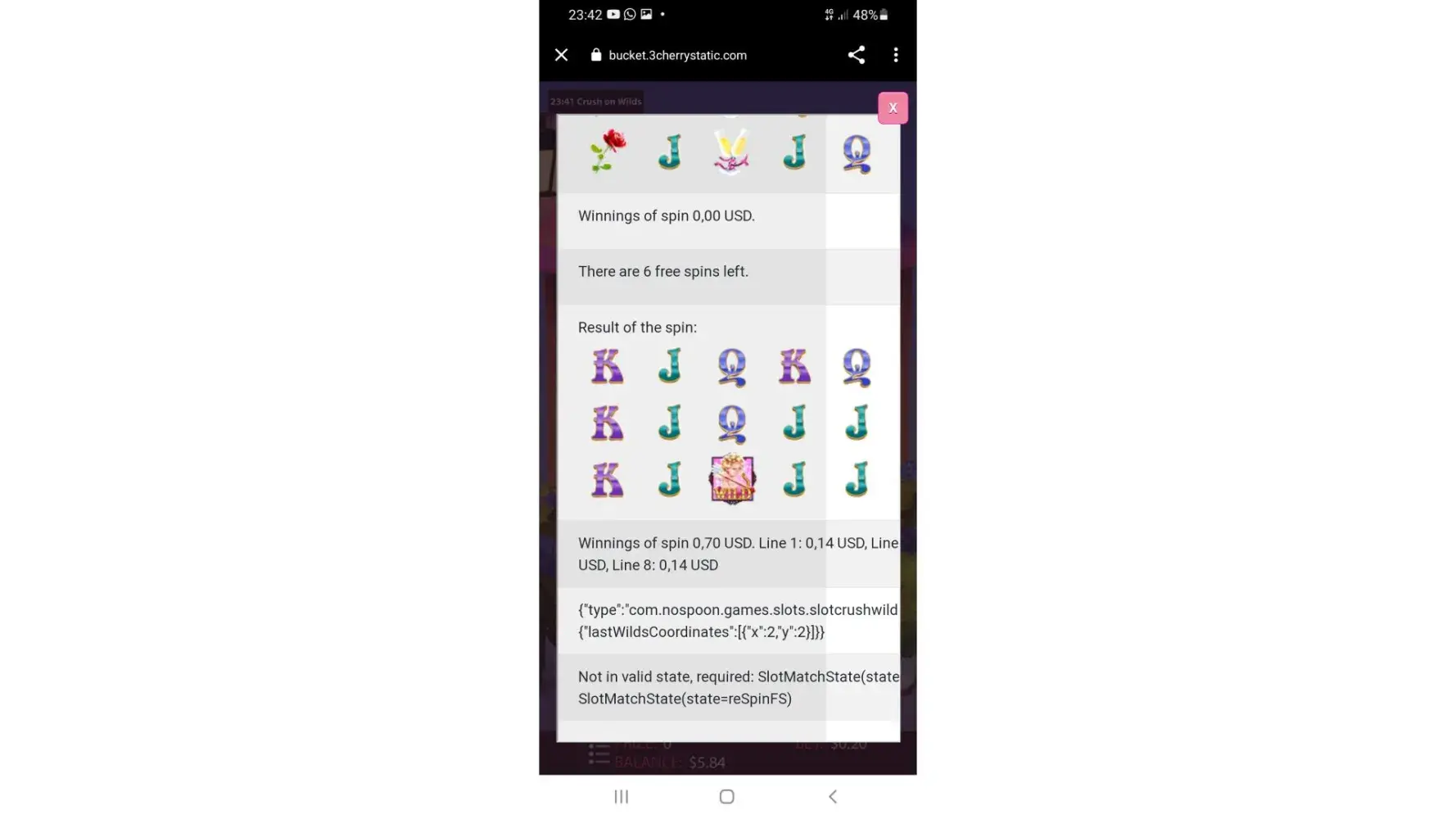 Desired outcome: I need the game resume at the time I spin for 5th free spin with my whole winnings