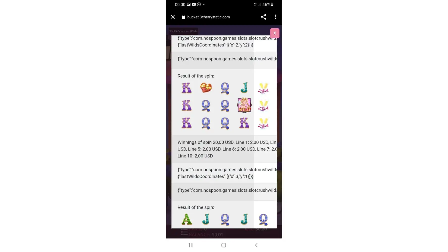 I won 10 free spins. My 4th free spin got 20 dollars when I spin 5th one it automatically reset the game