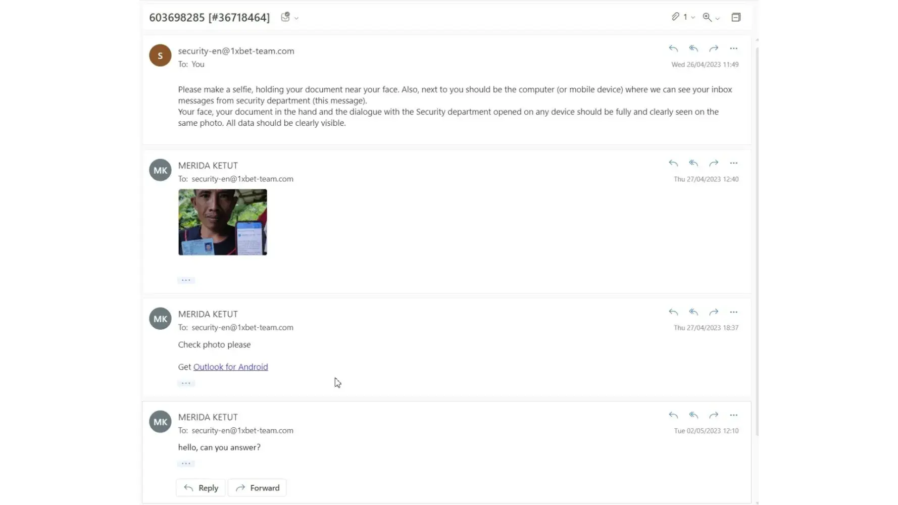 1xbet support was faster here before. But in the last few months not been a single replay. However, just sent an email with all details.