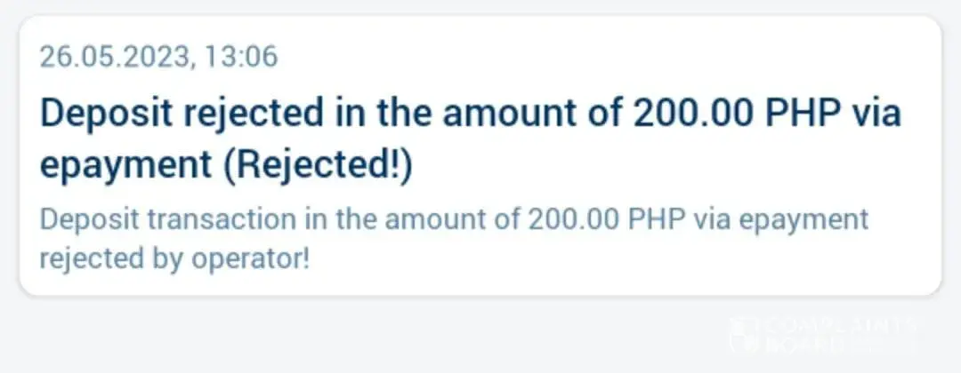 Today I tried to deposit using Maya instead of my usual Gcash since it says that the number shown is not able to take more money. 12:50pm I payed for 200 pesos and was greeted by a mail few minutes later that says my payment was rejected with no reason attached. I complained to customer service, sent all necessary proofs but still yet to have a response.